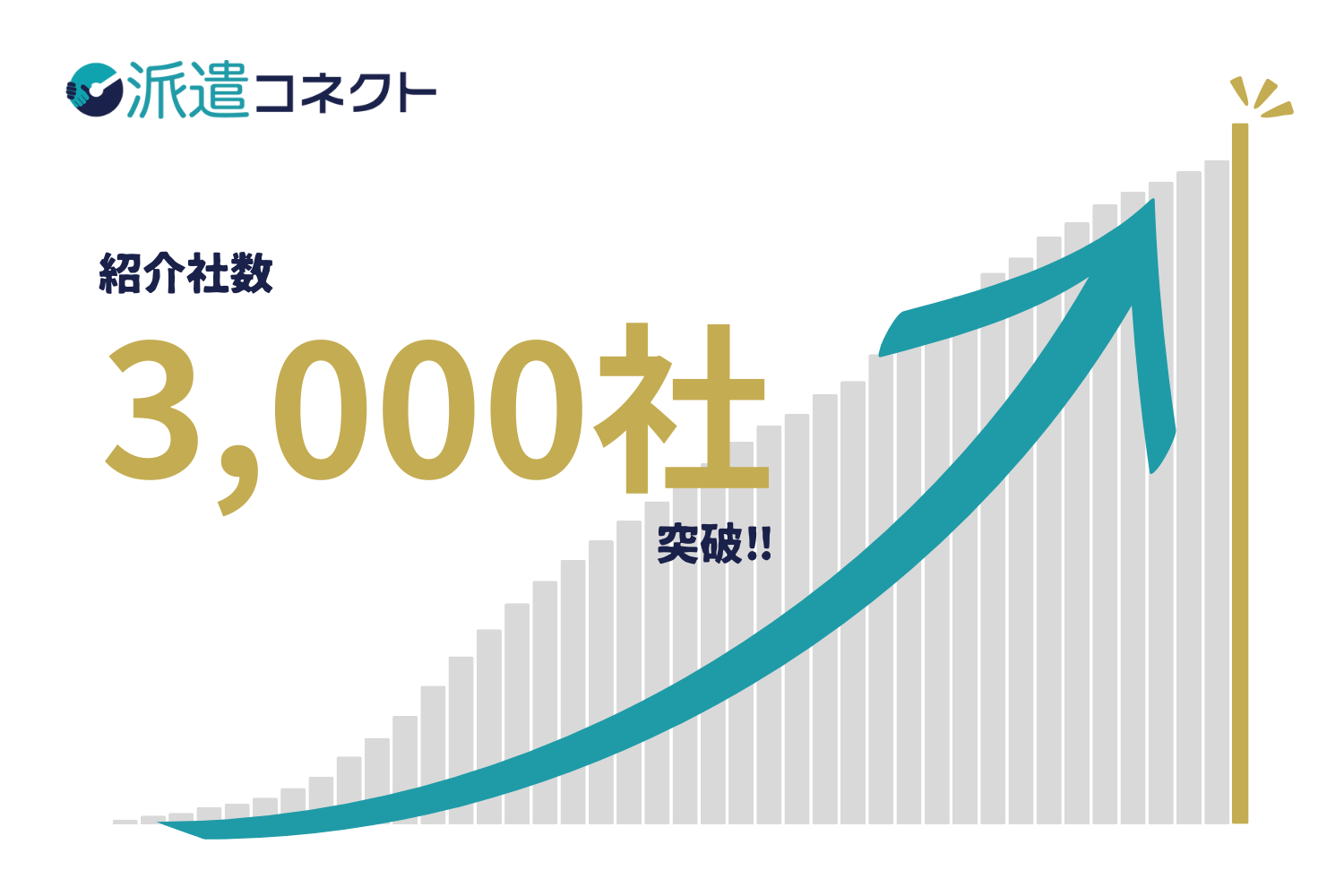2020年10月に「派遣コネクト」をリリースしてから約3年、人材派遣サービスの利用を検討している企業(以下 派遣求人企業)と人材派遣会社の方々に評価いただき、この度累計紹介社数3000社を突破いたしました。