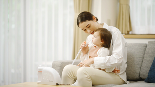 赤ちゃんは自分で鼻水をかむことができず、保育者のこまめなケアが必要です。鼻水がつまってしまうと、ミルクや母乳の飲みが悪くなったり、夜にぐっすり眠れない原因にもなるためです。また鼻水が中耳炎や風邪の重症化につながることも大きな問題でした。ホームメディカルを推奨するベビースマイルは、そのような背景を受け家庭での鼻水吸引の重要性に着目。家庭で手軽に使え、しっかりと吸引できる電動鼻水吸引器「メルシーポットS-504」を開発しました。