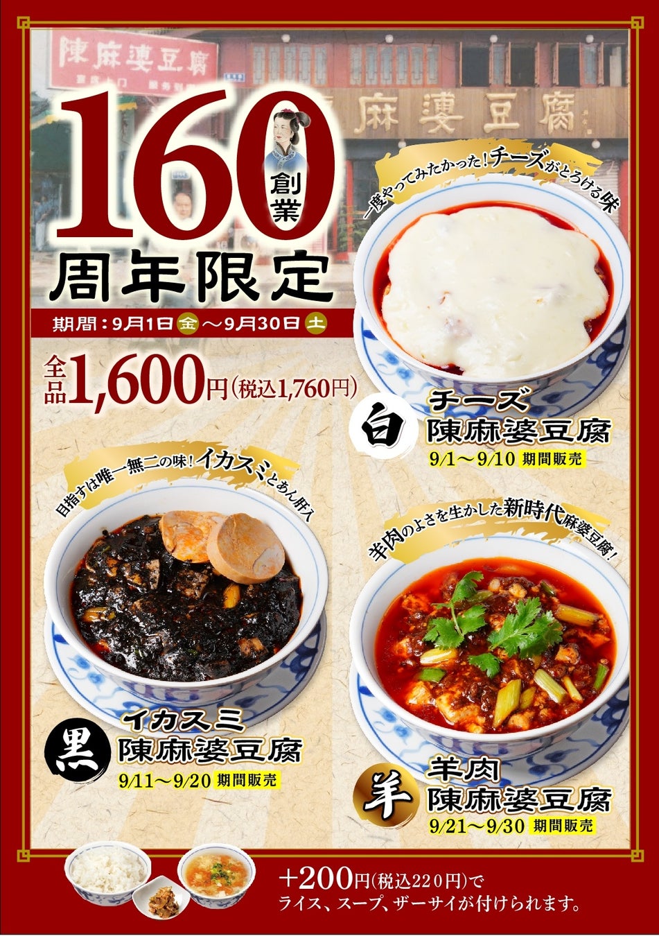 そんな陳興盛飯舗の創業から 160 年を記念し、日本の陳麻婆豆腐各店で「創業祭」を開催します。