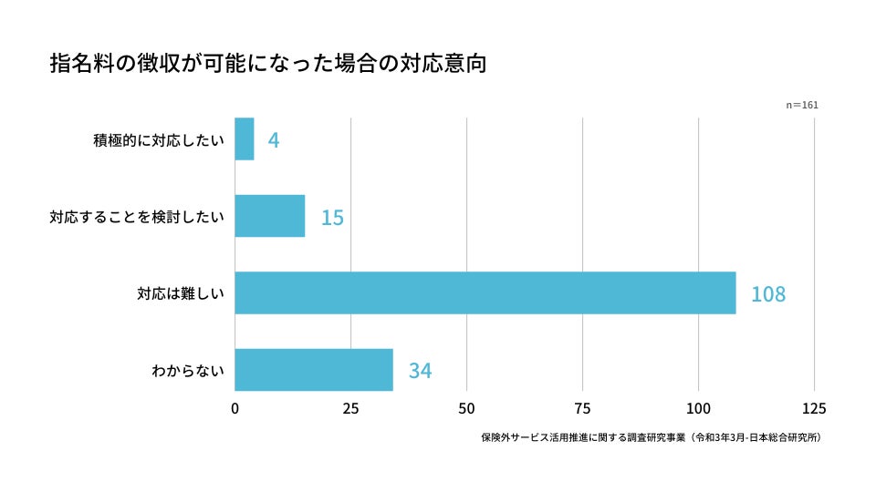 現在の介護保険法上のルールにおいて、訪問介護では介護士の指名をすることは認められていません。また日本総合研究所が2021年に実施した介護保険外サービスに関する調査において、ヘルパーの指名制度を導入することで「ヘルパーのシフト上対応できないことが多くなる」ことを懸念し、否定的な意見を抱いている訪問介護事業所が多いという調査結果が発表されています。