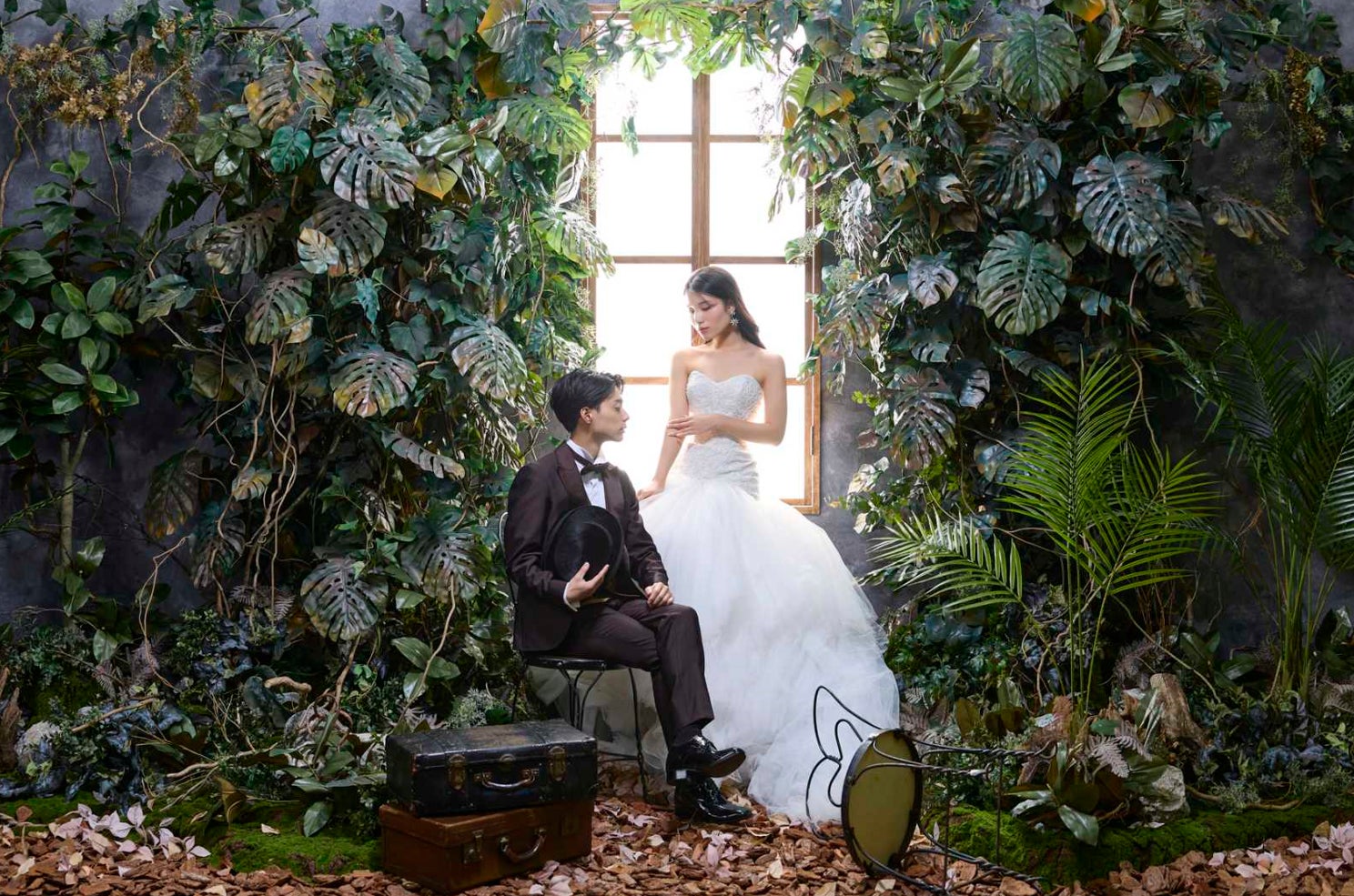 日本のフォトウエディングでは、新郎新婦の自然な表情を切り取ったカットが多いのが特徴。それに対し「韓国フォト」はまるで映画やドラマのワンシーンを彷彿とさせる、ドラマティックな世界観での写真が撮影できます。 撮影専用スタジオには、オリジナルの世界観・コンセプトがあり、 最高のワンシーンを作り上げるために完備された撮影セットやドレスが特徴です。