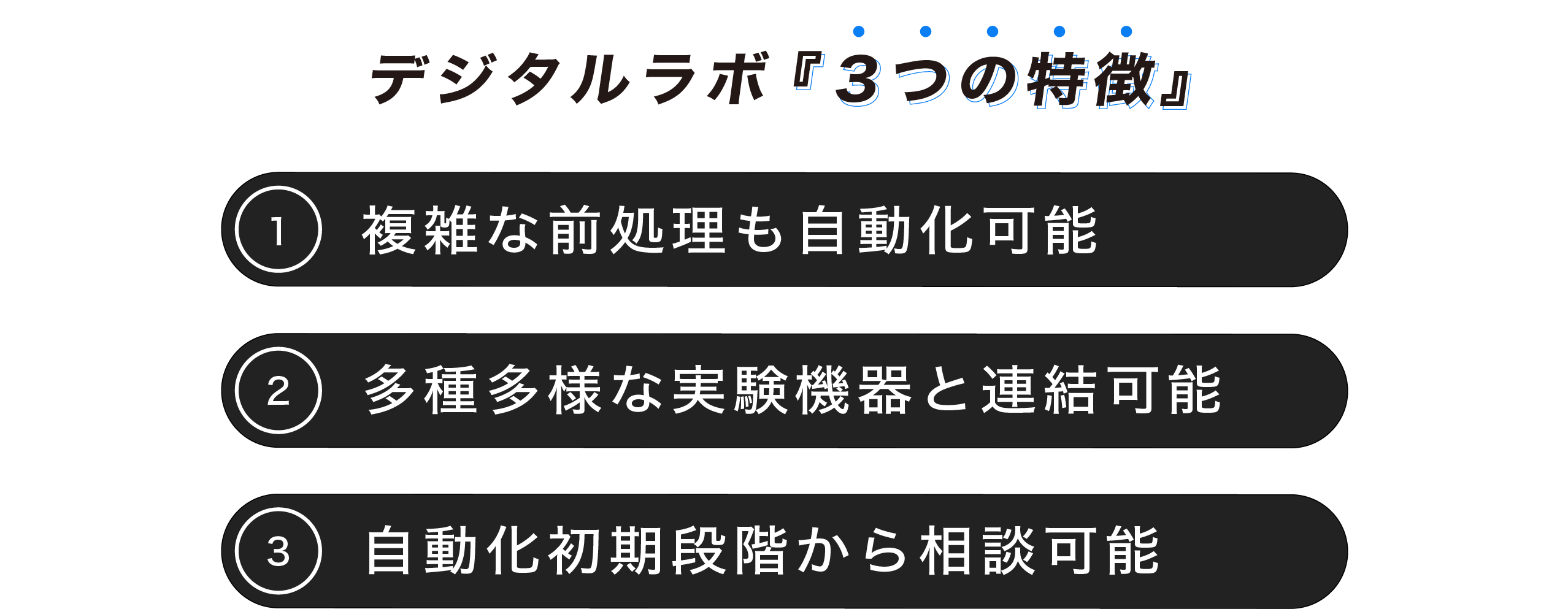 デジタルラボは、協働ロボットを使用して研究開発の実験作業を自動化する汎用性、拡張性に優れたR&D自動化システムです。協働ロボットは人との協働作業が可能であり、これまでロボットの導入が難しかった作業やスペースにも適用し、現場で求められるパラメータの調整やプロトコルの変更などに柔軟に対応することで高い生産性を維持します。