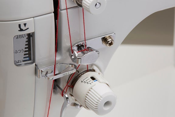 厚手生地縫製に使われる太糸専用の上糸掛け機能を設けました。糸調子を大きく強める必要がなく、糸締まりの良い縫い目を作ることができます。また、ヨリの強い糸でも、ヨリ戻りや糸暴れを防止し、安定した糸調子できれいな縫い目を実現します。