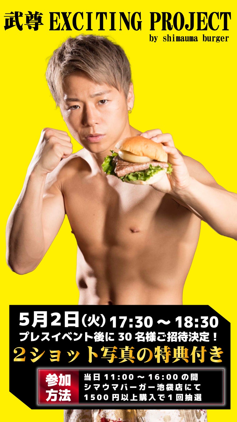 この度、SHIMAUMA BURGERでは、6月24日にフランス パリ『Impact in Paris』にて復帰戦を控える格闘家の武尊選手とコラボレーションによる「武尊 EXCITING PROJECT」キャンペーンを展開する運びとなりました。