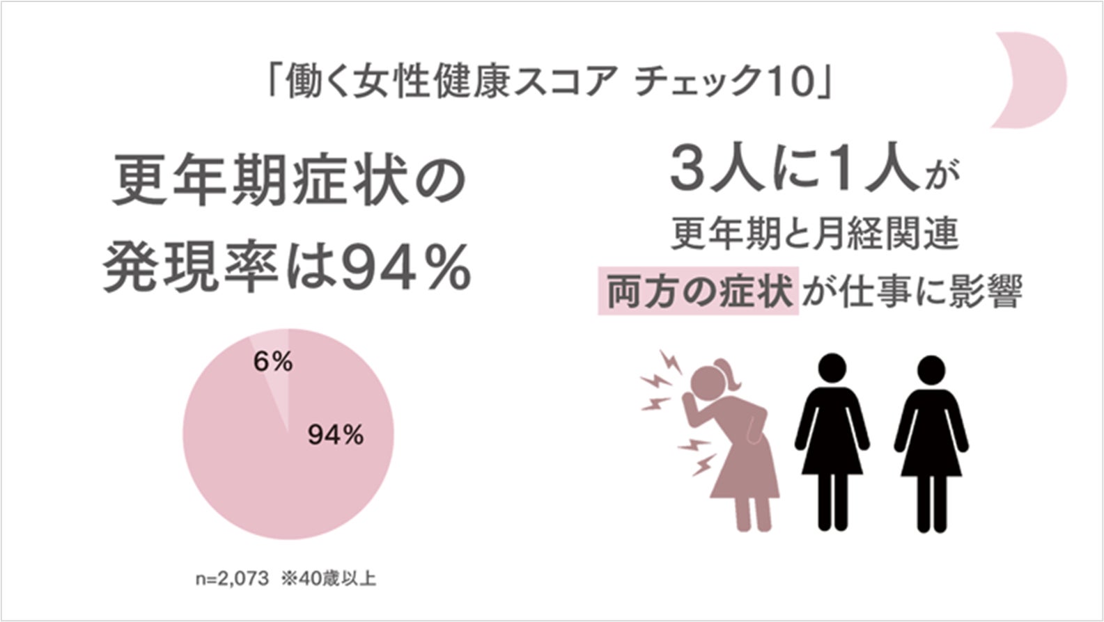 【 女性特有の症状で88%の女性が仕事に影響を感じている実態、40代以上は3人に1人が「更年期症状」「月経・PMS」両方の症状も】