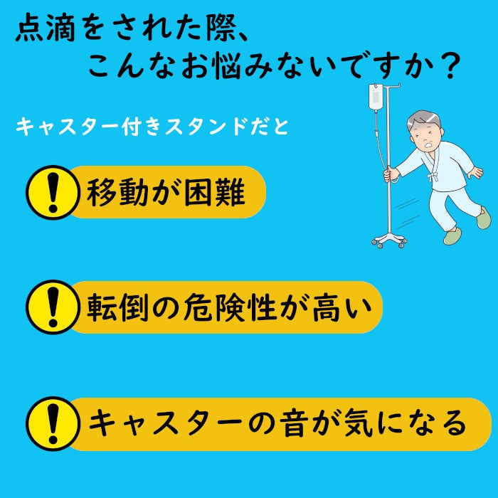 また、看護師側も、点滴を管理するために患者のベッド周りを何度も行き来しなければならず、時間的なストレスや肉体的な負担がかかることがありました。