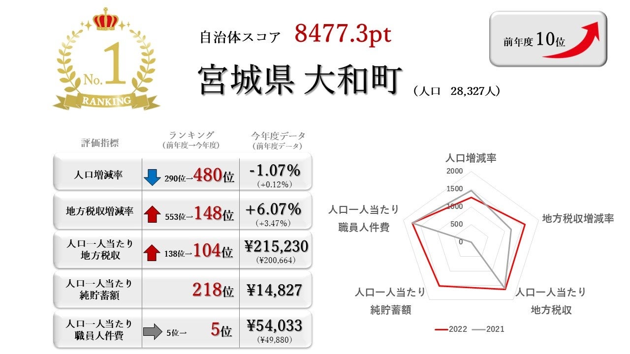 2022年度 自治体経営力日本一の自治体は宮城県大和町!