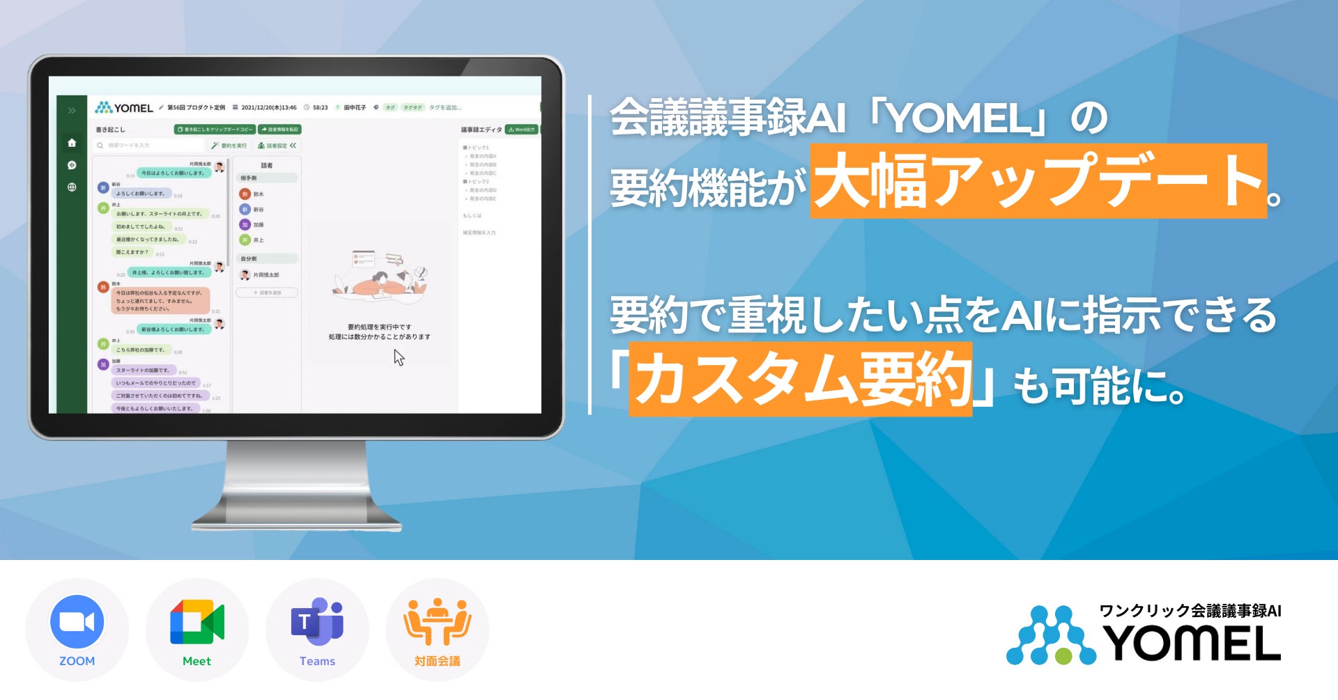 会議議事録AI「YOMEL」の要約機能が大幅アップデート。AIに指示ができる「カスタム要約」も可能に。