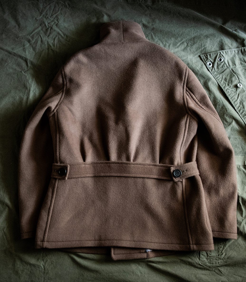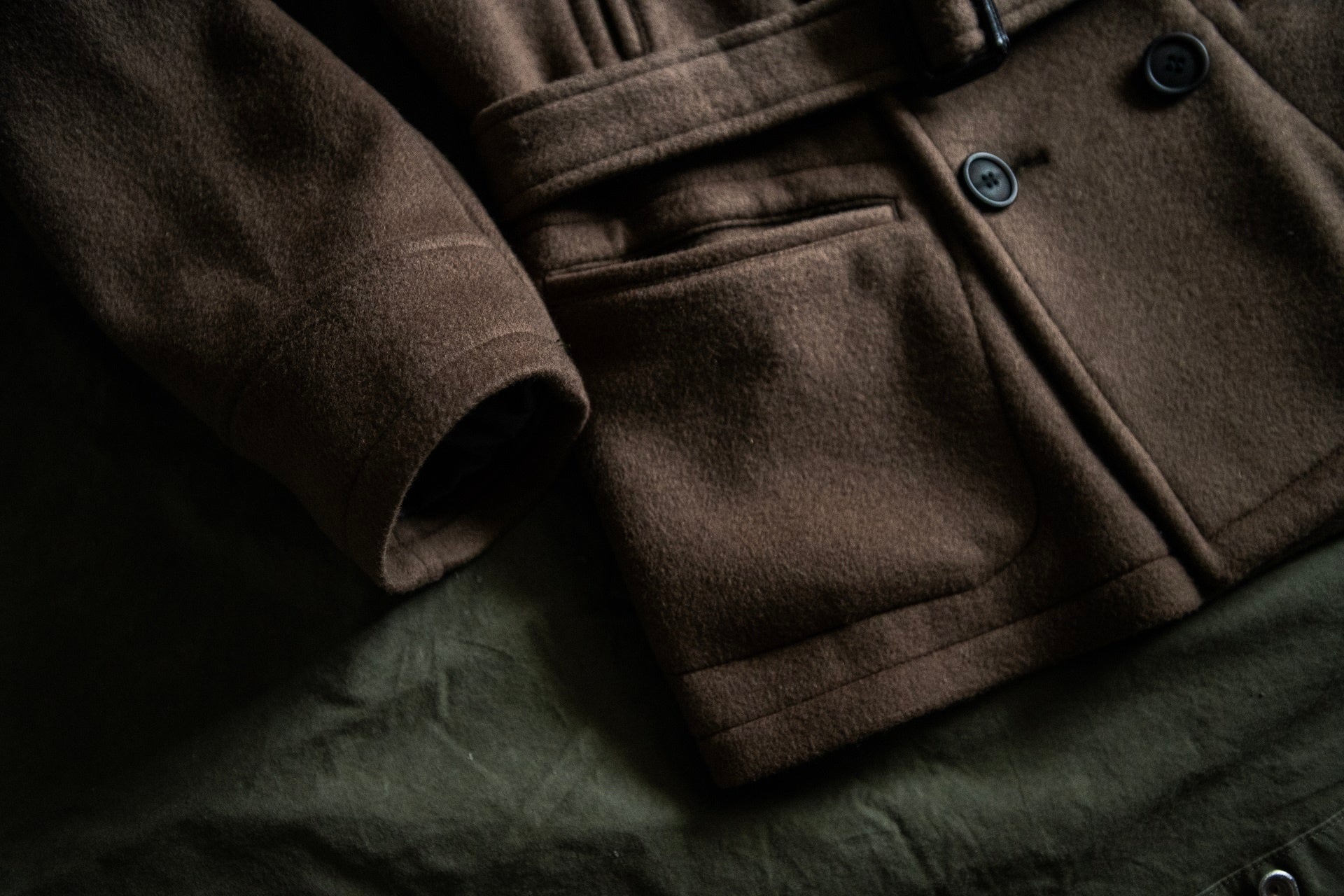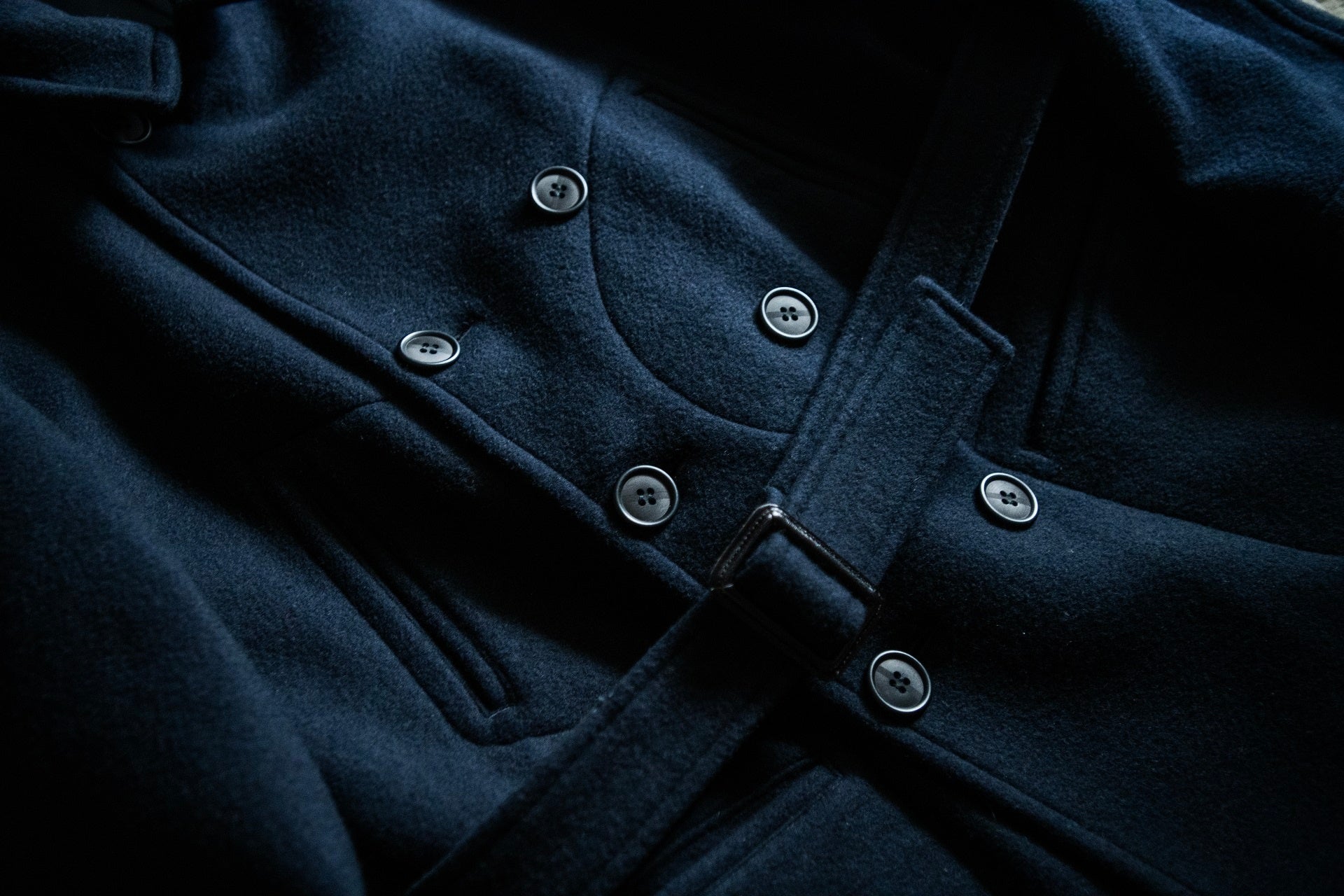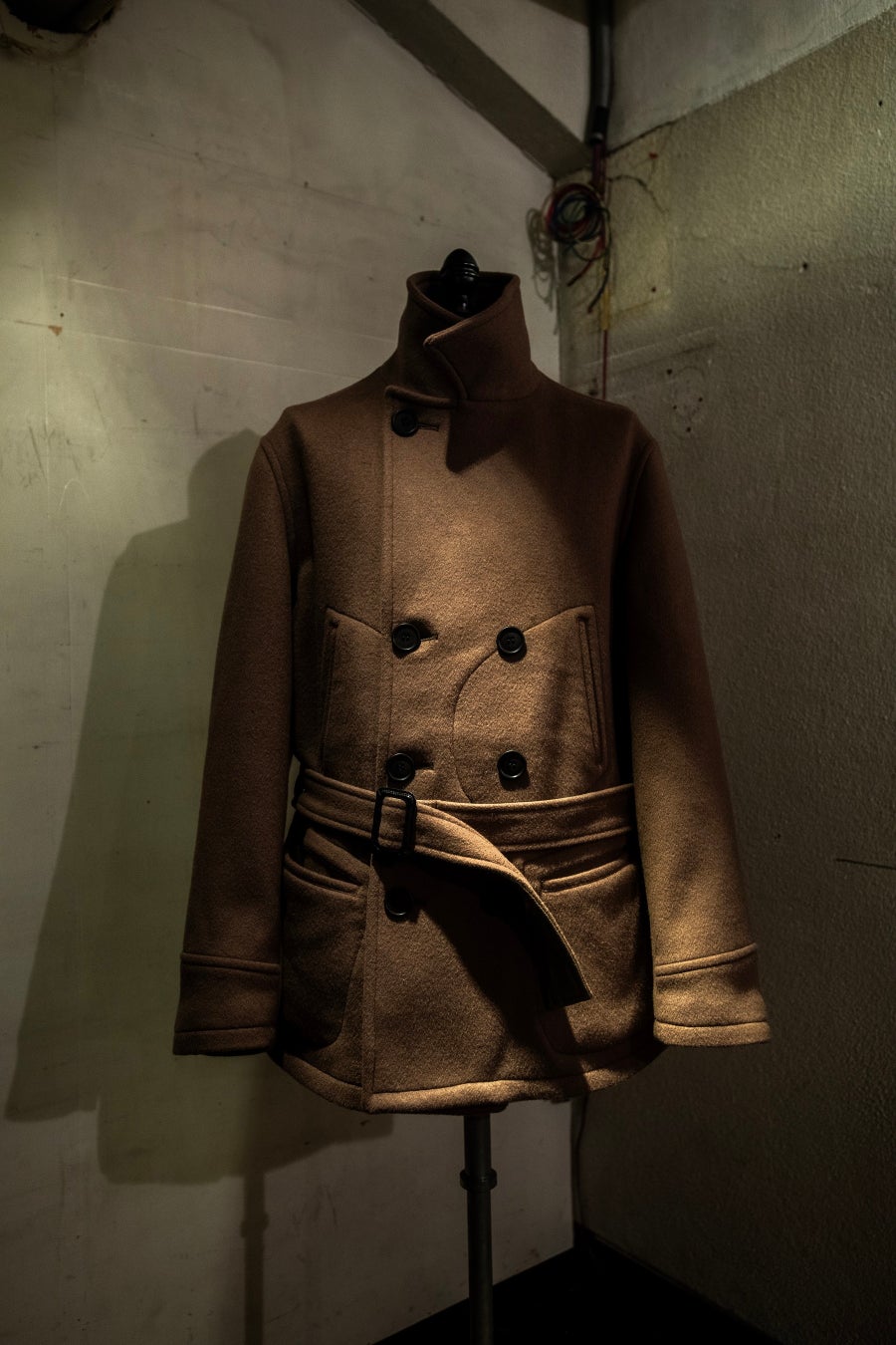 2024FW新作のPコートは、ヴィンテージのウエストベルト付きPコートをモチーフに、オリジナルデザインに仕上げました。