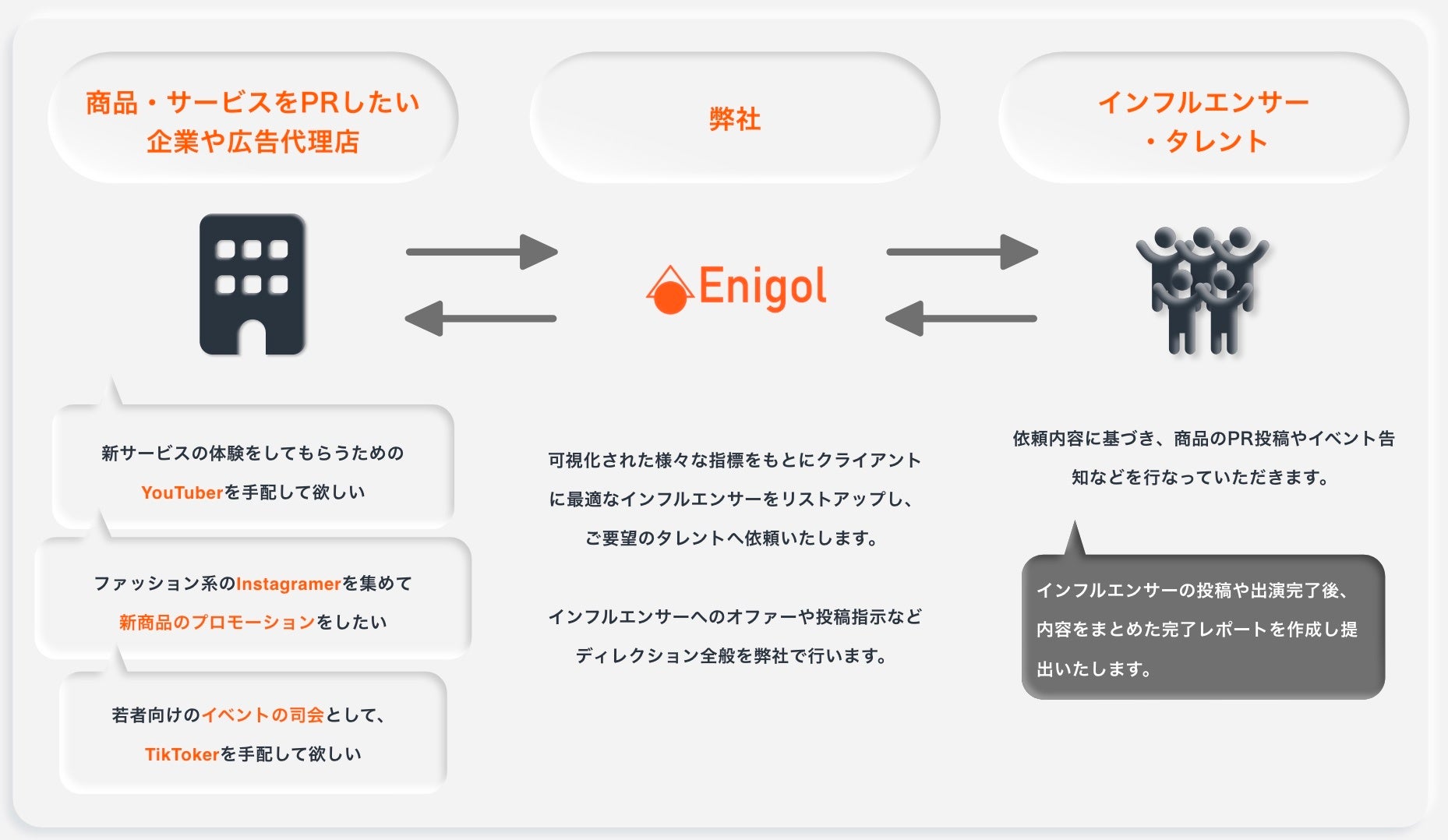 Enigolは、TikTokerキャスティングの課題を解決し、企業向けに効果的なマーケティング戦略を展開するための新サービスを提供することで、より多くの企業の成功をサポートしてまいります。