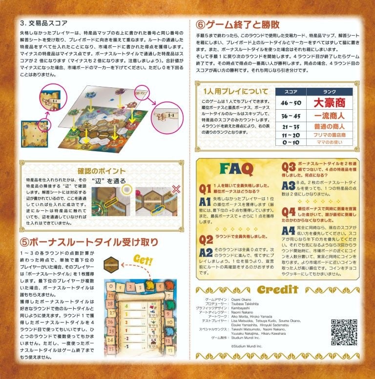 ラウンドが進むごとに特産品の数が多くなり、2分の制限がある中で位置を想像して道をつなげていくハチャメチャ感がとても楽しいゲームです!