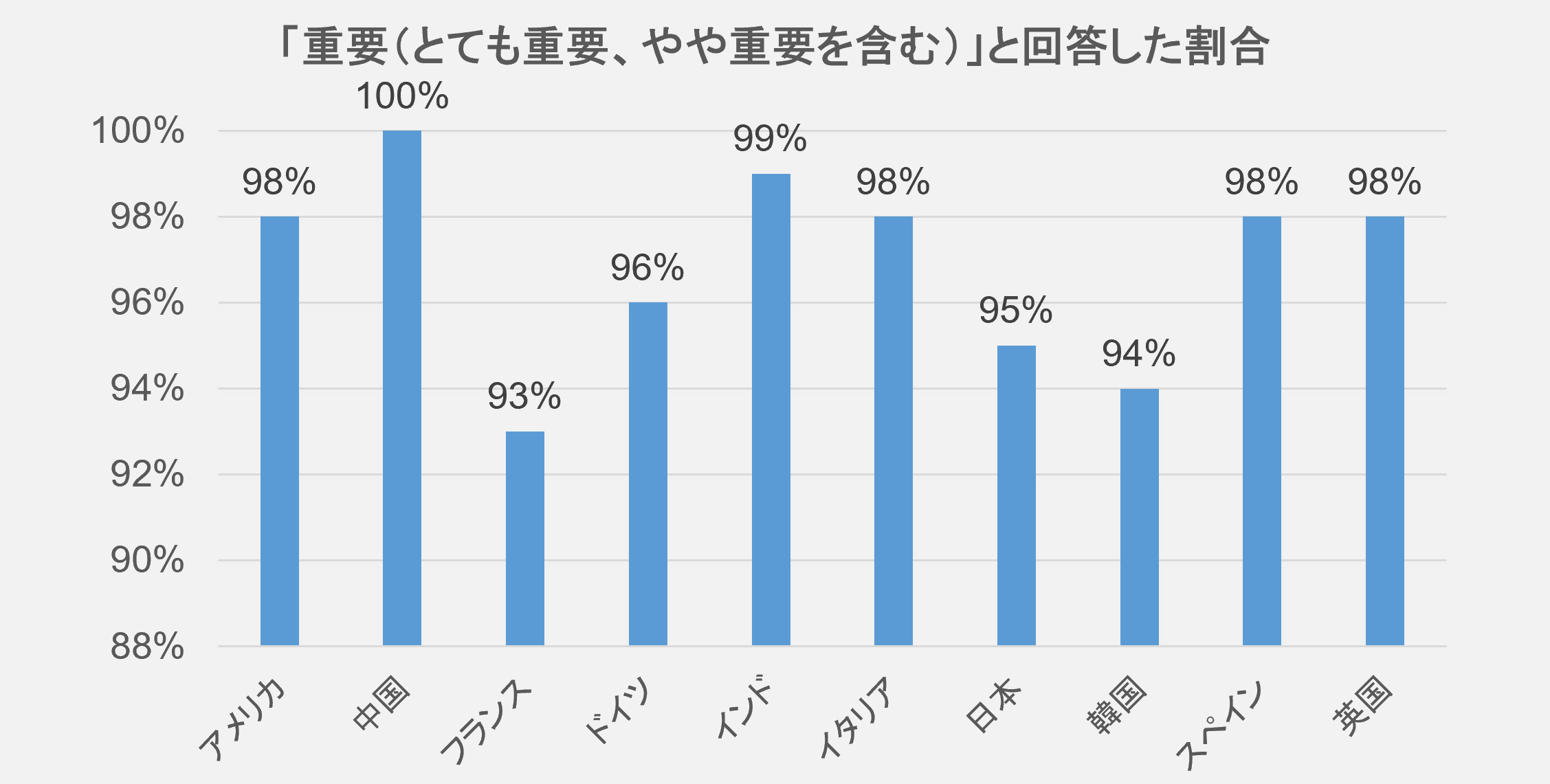 回答:日本人の95%が「重要(とても重要、やや重要を含む)」と回答。平均よりやや低いものの、デジタルツイン技術に対する意識自体には大きな開きがないことが明らかに。