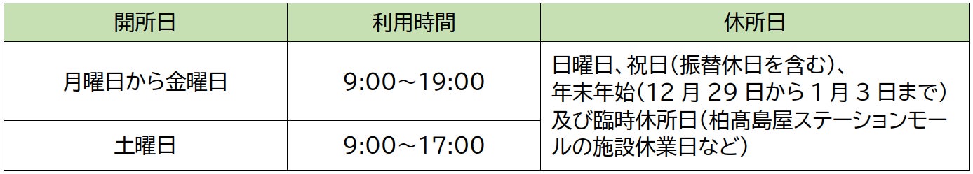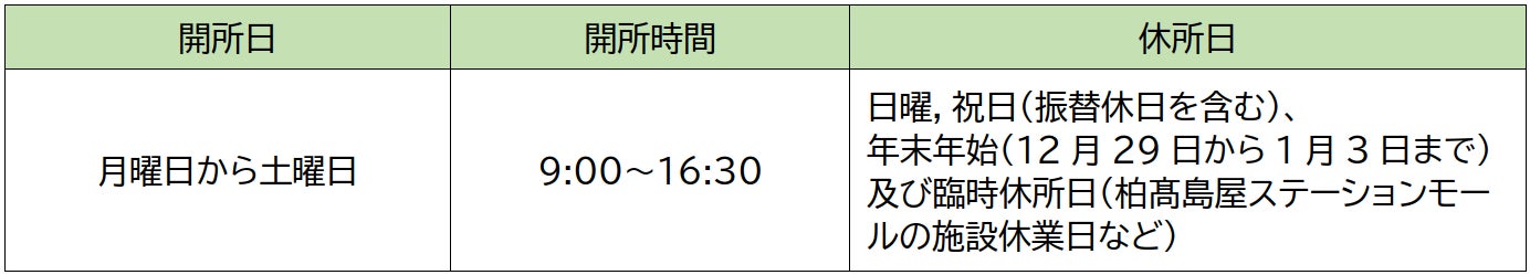 【開所日時のご案内】