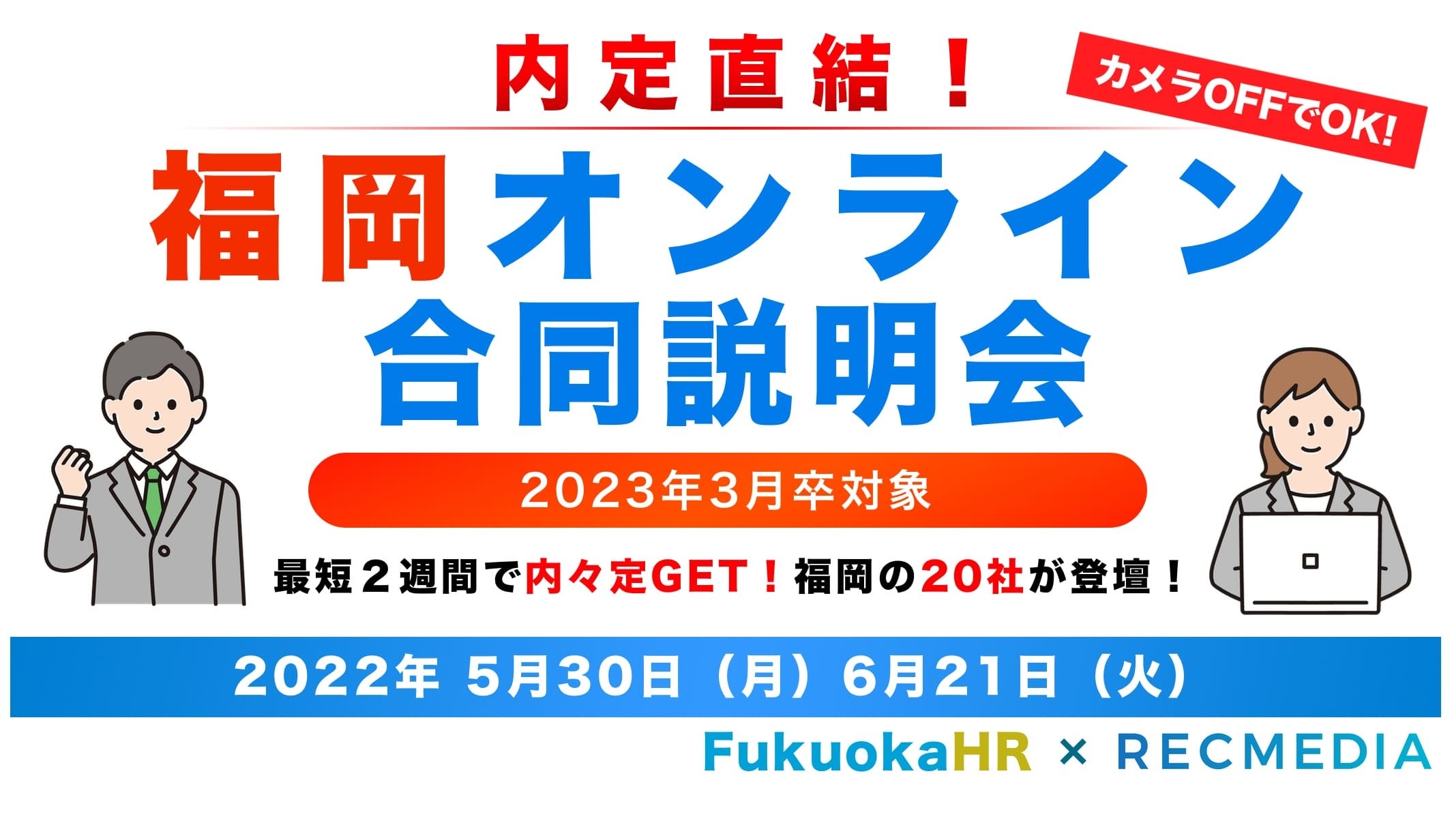 【福岡の就活イベント】「24卒 福岡オンライン業界研究 リクメディア・フェスタ」と「23卒 内定直結!福岡オンライン合同説明会」が2022年春・夏に開催!