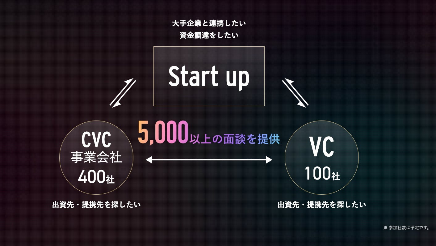 すでに400社の事業会社・VC・CVCがエントリーしており、開催本番には約500社が参加する⾒込みです。