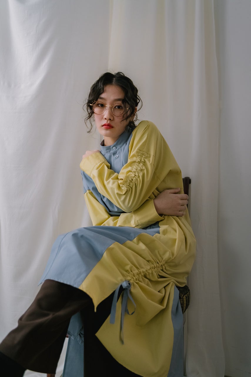 『 25AW - MIXTURE - 』今季のコレクションは、ワンピース/ジャケットなど 全6型(各2~3色)、ストールで構成している。今季は新たにドロストデザインを取り入れたワンピースが登場。オリジナルの播州織ジャカードは、フリンジカット技法や高密度製織など、テキスタイル技術を突き詰めたモノづくりを行う。過去に購入歴がある方などには、テキスタイル付きのダイレクトメールを送っている。