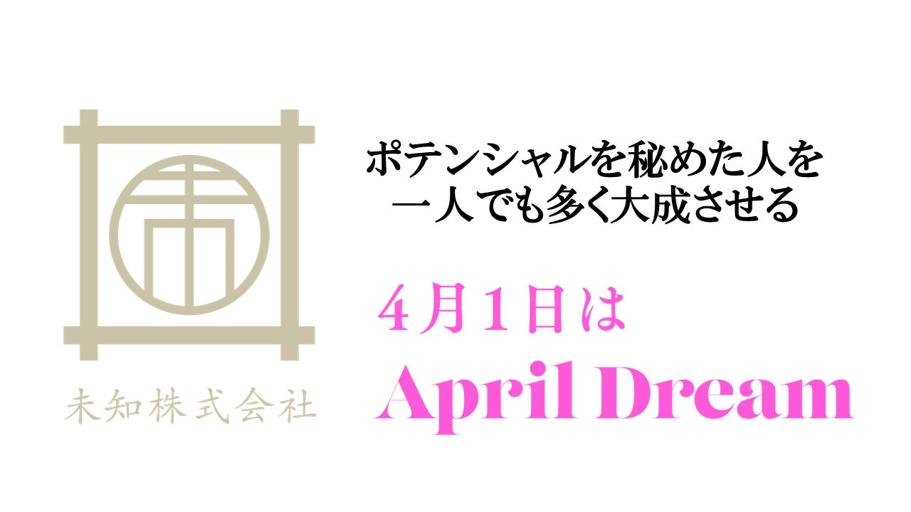 当社は、4月1日を夢を発信する日にしようとするApril Dreamに賛同しています。このプレスリリースは「未知株式会社」の夢です。WEBコンテンツマーケティングを展開する、未知株式会社(本社:大阪市北区、代表取締役CEO:下方彩純)は事業を通して、全てのポテンシャル人財が「開花」する世界を創造していきます。