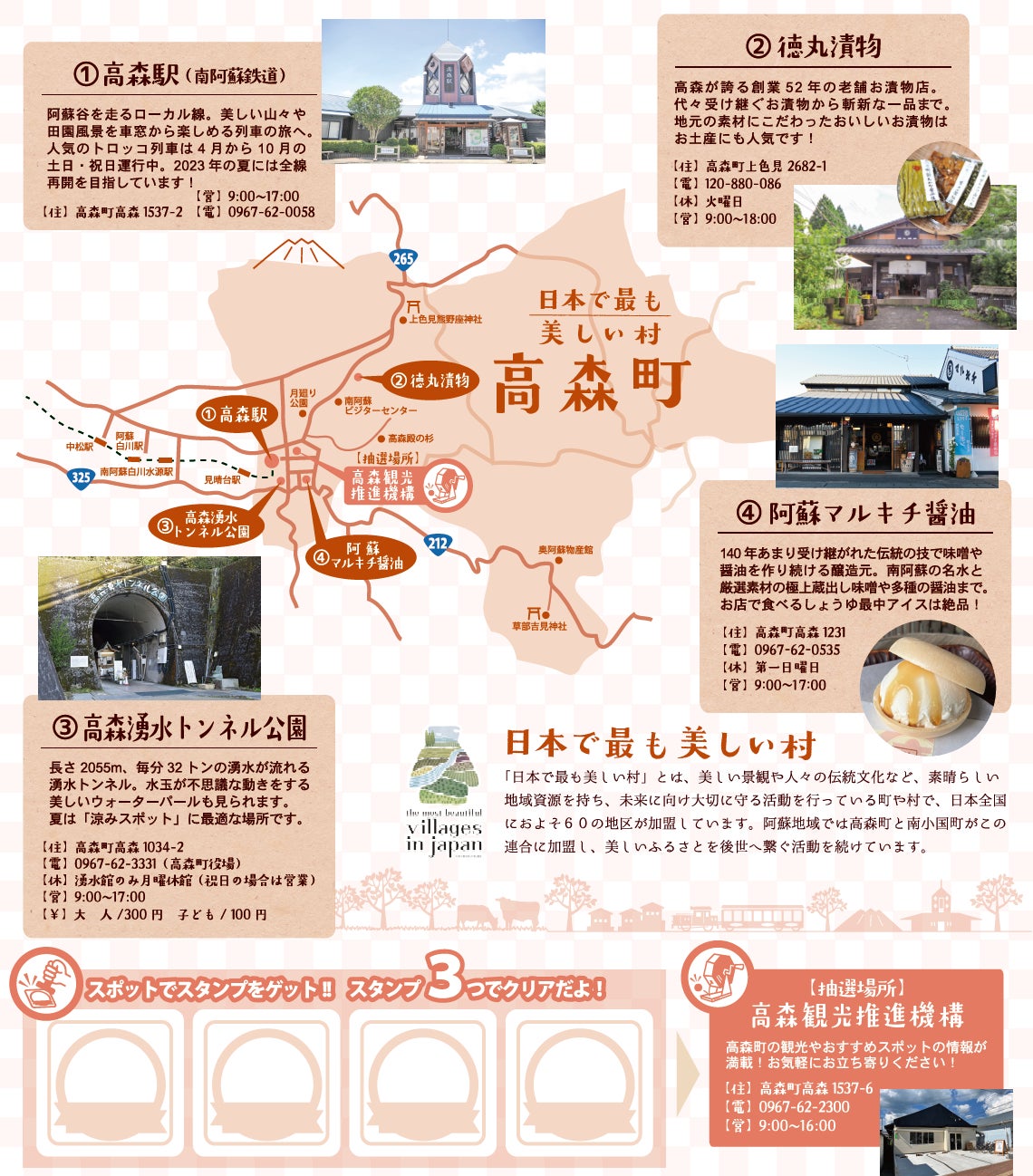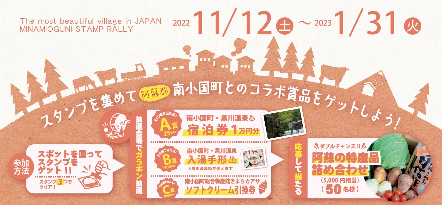 秋冬の高森町・南小国町を巡ってガラポンでその場で当たる!「日本で最も美しい村スタンプラリーin阿蘇」をスタート。