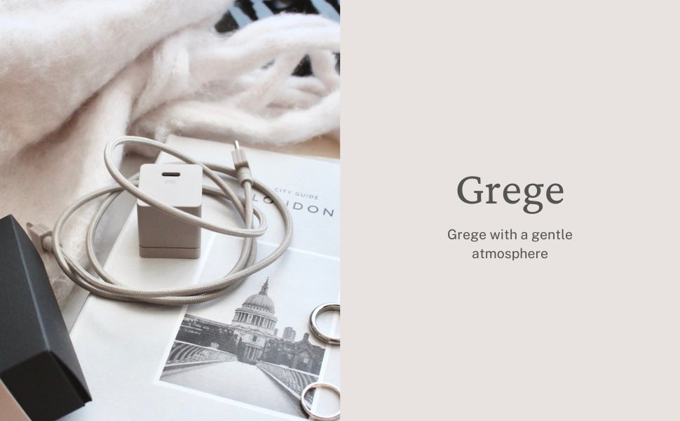 ニュアンスカラーのグレージュとブルーグレーのACアダプターは、目立ちすぎることなく上品なお洒落を叶えてくれます。