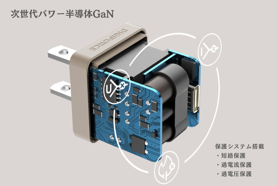 次世代パワー半導体素材のGaN(窒化ガリウム)を採用。