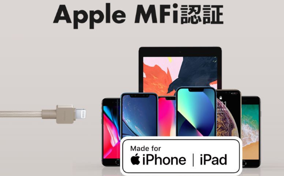 PD対応のMFi認証済(Appleが提供するMFiプログラムで、性能基準を満たしていることを証明)のケーブルは、アップル社の認証チップ「C94コネクタ」を採用しています。