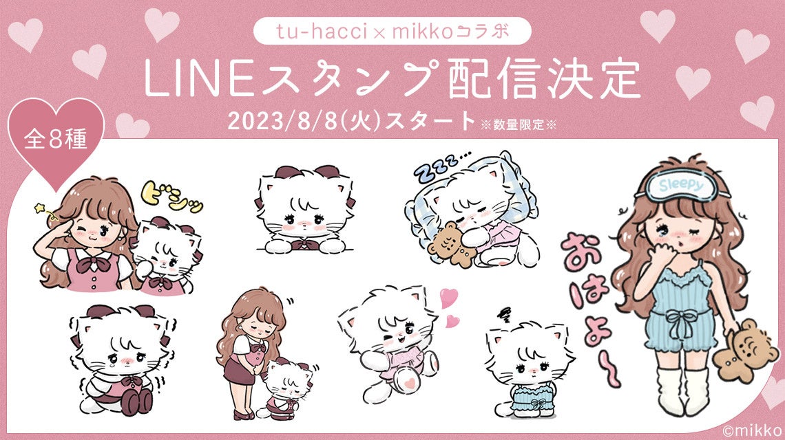 【無料LINEスタンプ】人気イラストレーター「tu-hacci」x「mikko」がコラボ限定LINEスタンプ(全8種類)を無料配布決定!