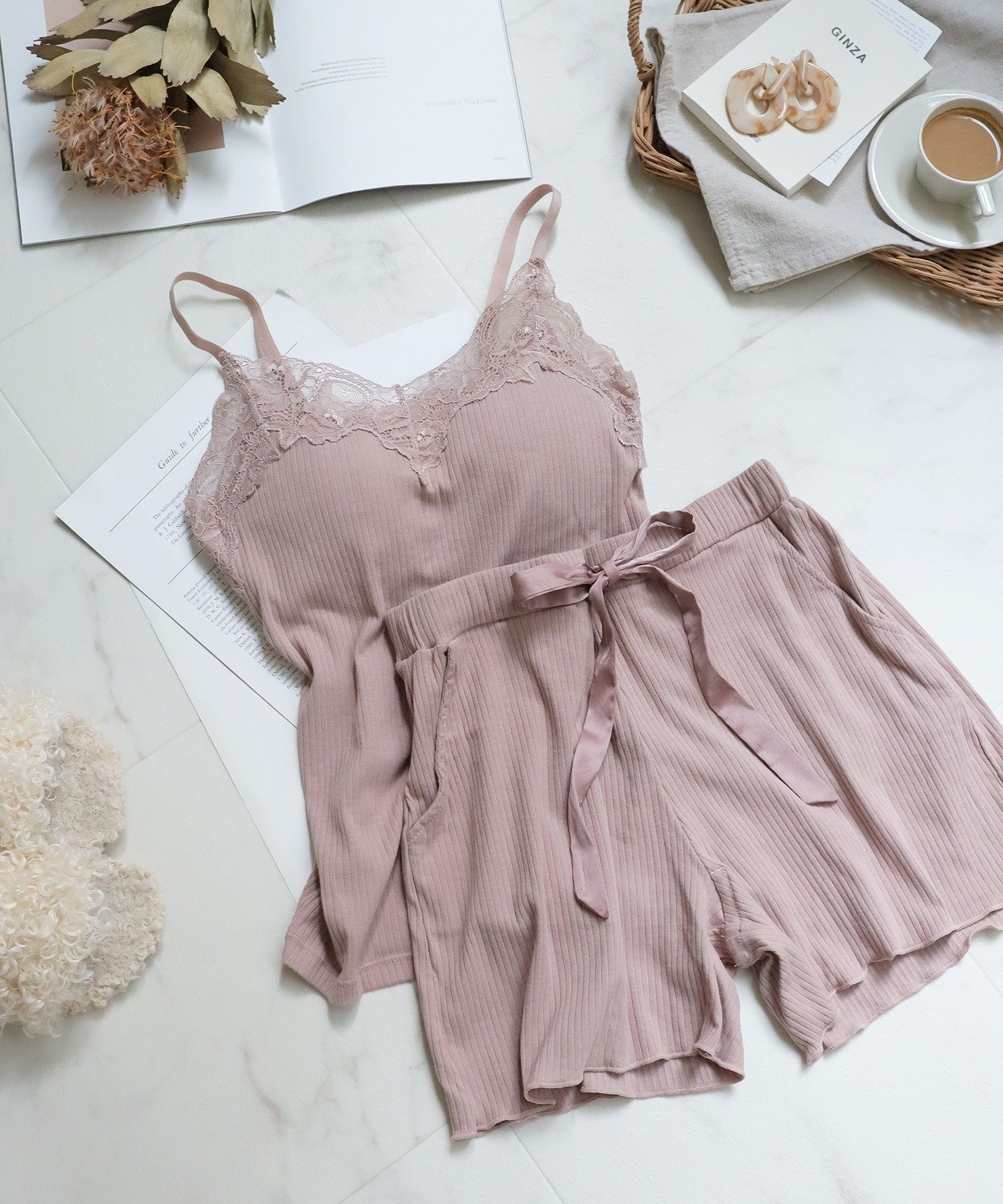 ノンワイヤーでもトップ位置が高く、自然な美胸メイクを叶えるカップを独自に開発。日中からおうち時間まで幅広く活躍します。《ブライラズ》リブレースキャミノンワイヤー&ショートパンツセット(全7color)