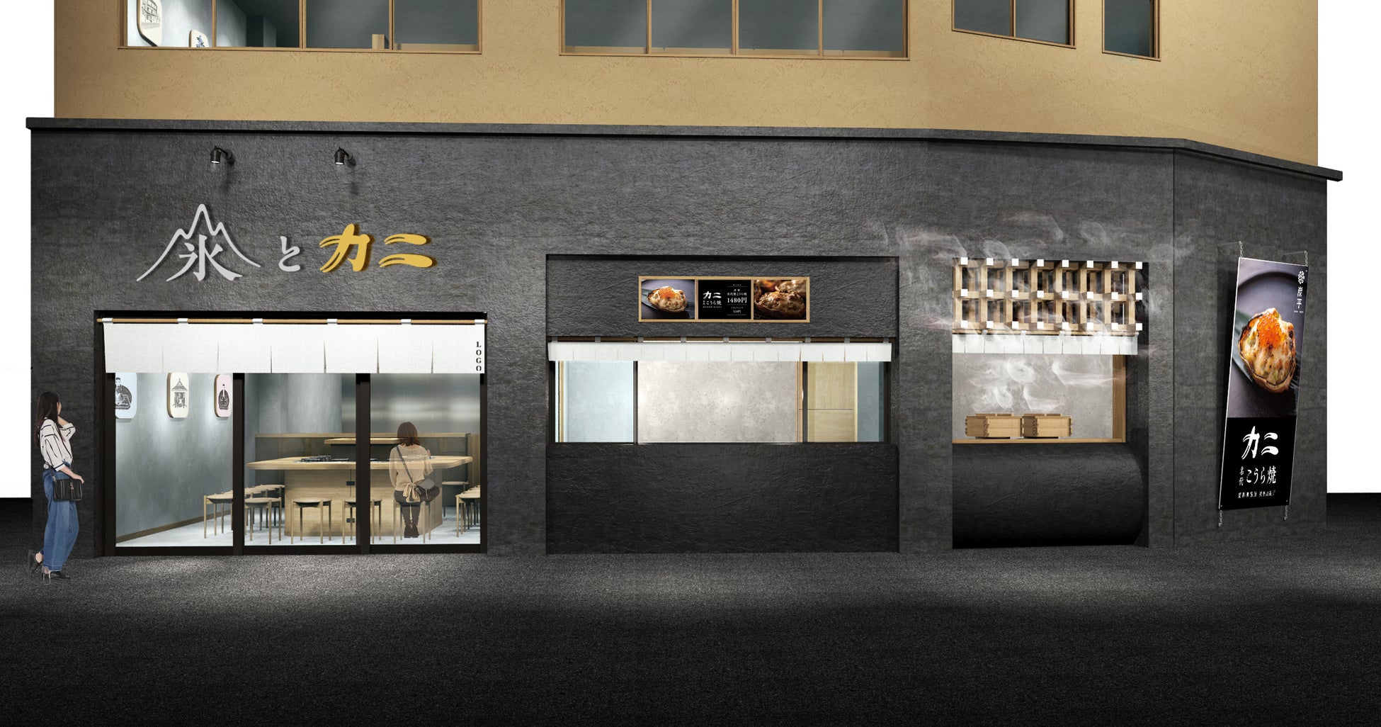 新店舗「氷とカニ」は、JR城崎温泉駅前というアクセス抜群の立地にございます。 「カニ」の甲羅焼に加え、2026年春からは、老舗料亭のこだわりを活かした特製かき氷など「氷」メニューの販売も開始予定です。一年を通じて城崎温泉を訪れるお客様に、熱々または冷たい魅力的な食体験をご提供いたします。