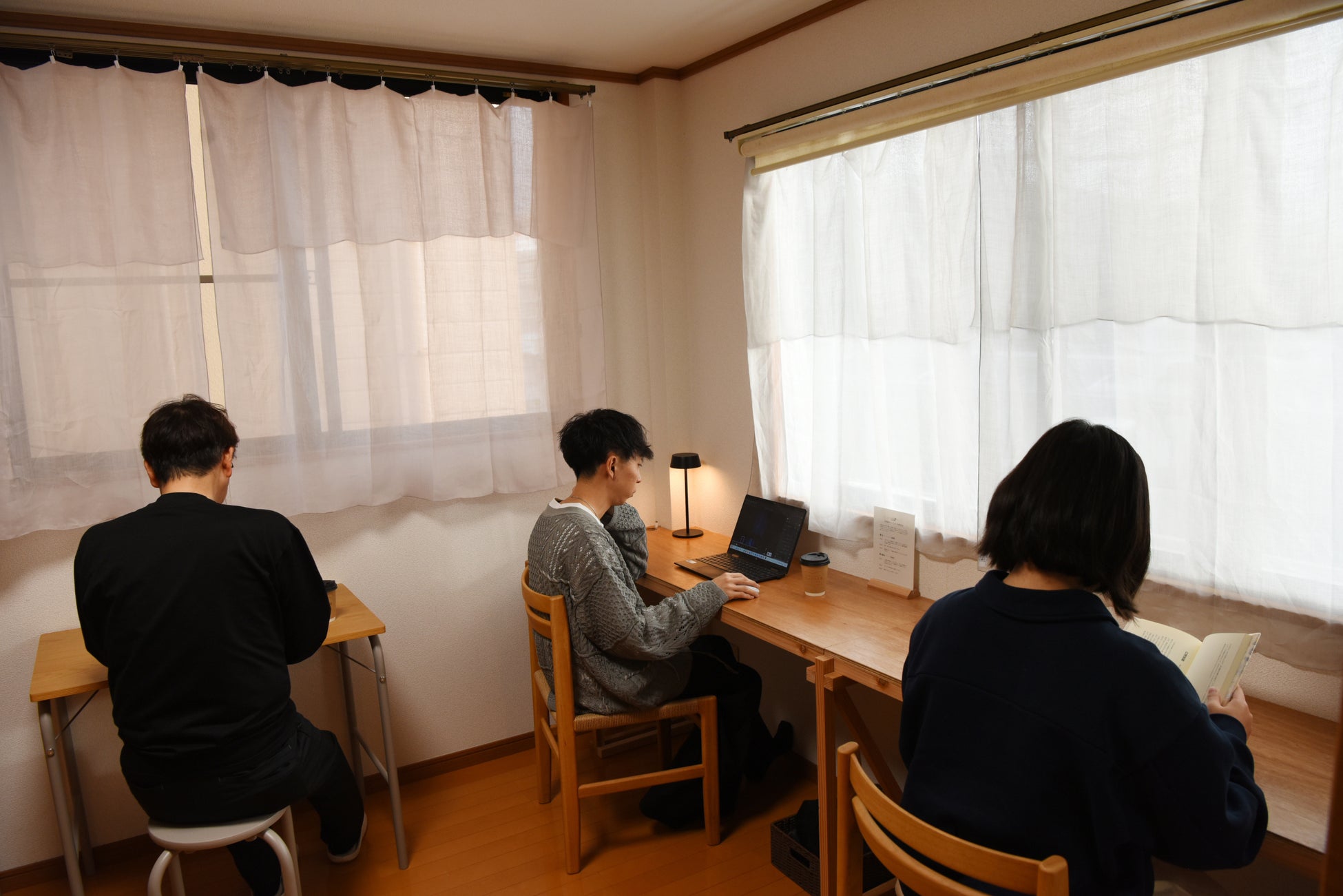 兵庫県豊岡市だいかい通りにある「本と暮らしのあるところ だいかい文庫」2階に併設。ドロップイン利用とマンスリー会員の2種類のプランを提供。Wi-Fi・電源、作業スペースあり。