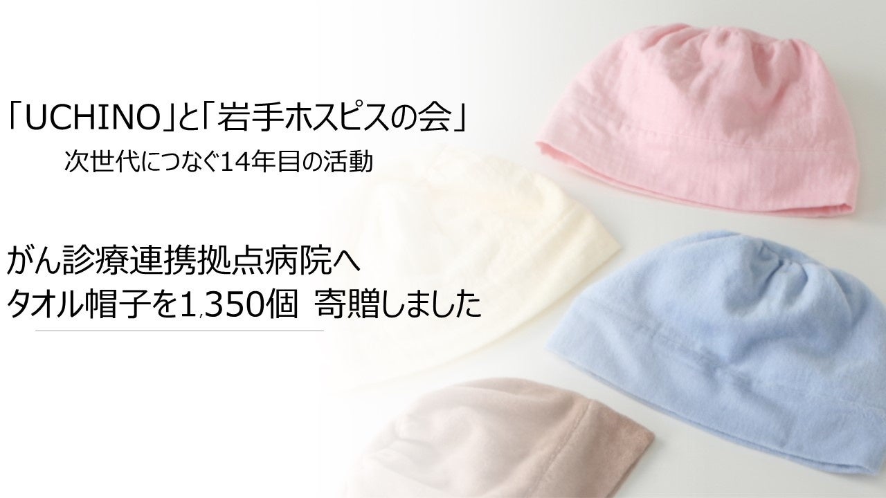 バスタイムから快眠まで、健やかで心地よいライフスタイルを提案する内野株式会社(本社:東京都中央区/代表取締役社長:内野信行)は、がん患者を支援する市民団体「岩手ホスピスの会」へ、タオル帽子を1,241個とタオルを寄贈したことをお知らせ致します。2009年から続く取り組みを通して、これまでにタオル帽子は25,394個、タオルは7,824枚を寄贈し、継続的にタオル帽子の輪を広げています。(https://www.uchino.co.jp/)