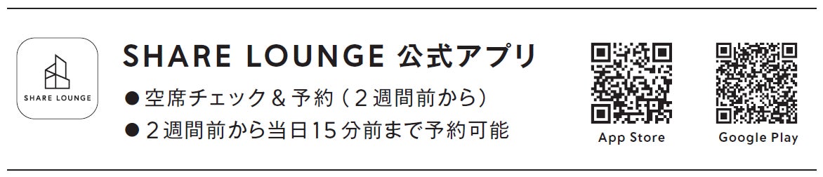 ・各店舗の営業時間は、SHARE LOUNGE公式アプリまたは公式サイトでご確認ください
