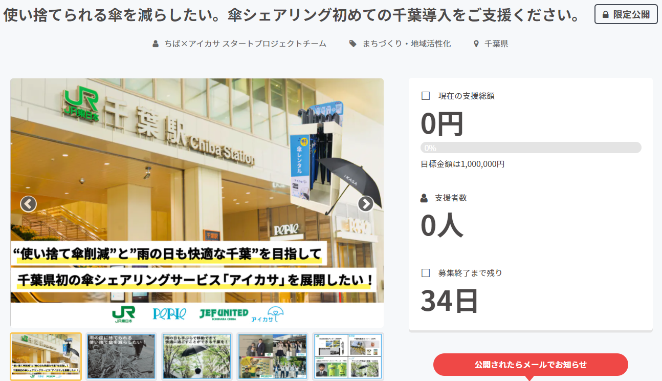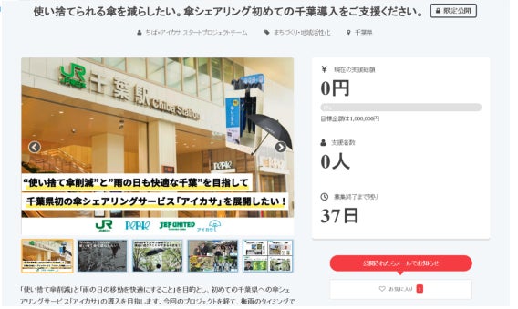 東日本旅客鉄道株式会社千葉支社(千葉市中央区、執行役員千葉支社長:中川 晴美)と株式会社千葉ステーションビル(本社:千葉市中央区、代表取締役社長:弭間 俊則)は、ジェフユナイテッド株式会社の協力のもと、株式会社Nature Innovation Groupが展開する傘のシェアリングサービス「アイカサ」を千葉市内の主な駅および商業施設ペリエに設置し、新たなサービスを展開します。