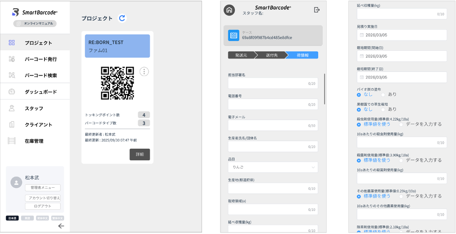 SmartBarcodeは株式会社LOZIが提供する、スマートフォンを使ってサプライチェーン全体(製造・物流・販売)のモノの動きを可視化・記録するSaaS型のトレーサビリティソリューションです。既存のバーコードやQRコードを活用し、専用アプリ不要のWebベースで、誰が・いつ・どこで・何を読み取ったかをリアルタイムに共有・管理できます。※ホームページURL:https://www.lozi.jp/smartbarcode/feature.html