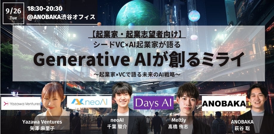 ANOBAKAと共催で交流会付き『Generative AIが創るミライ 〜起業家×VCで語る未来のAI戦略〜』を9/26に開催