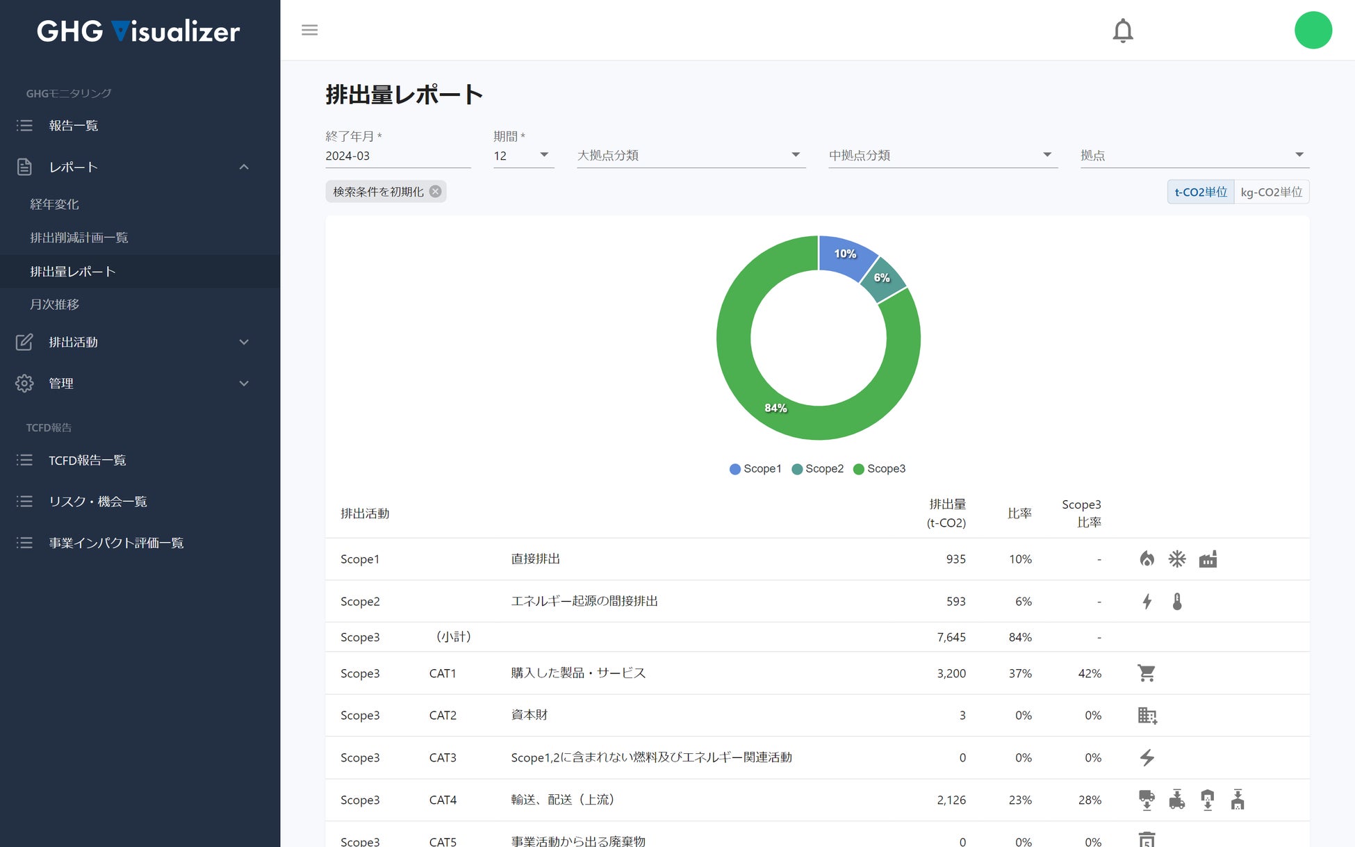 CO2排出量の算定と可視化を行う『GHG Visualizer』、LCA評価分析を実現する『GHG Visualizer LCAオプション』、TCFD提言に沿ったシナリオ分析、リスク定量評価、生成AIによるレポート自動生成を実現する『NeuTrail』を、サブスクリプションサービスとして提供します。