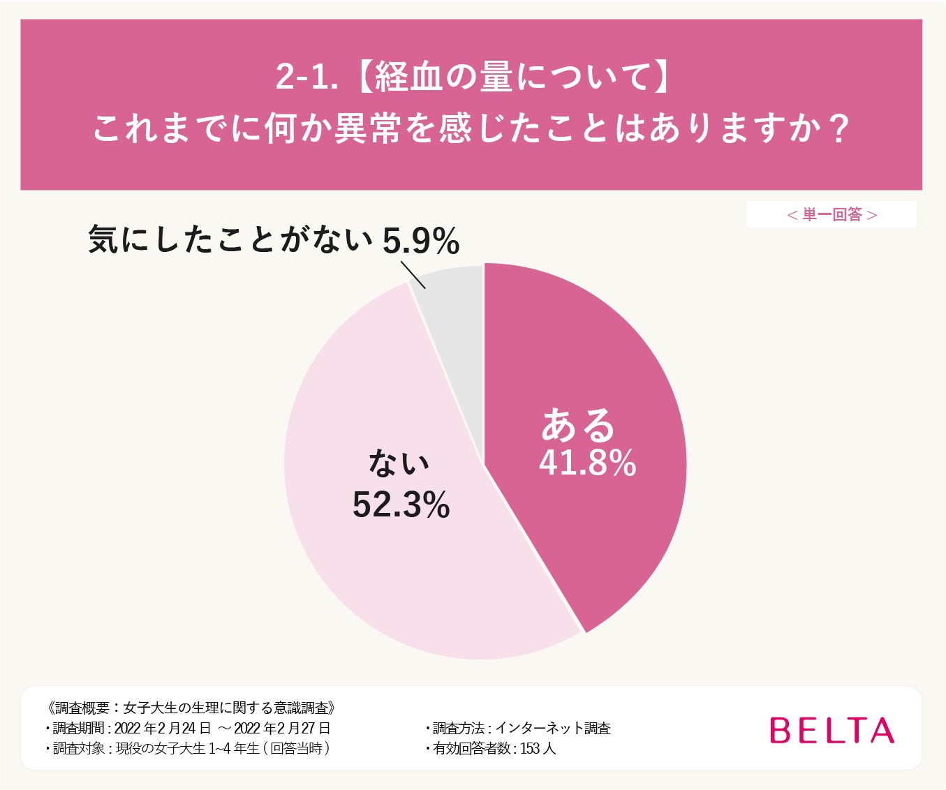 2. 生理中の経血量に異常を感じても、57.8%の女子大生が「現状維持」を続けている
