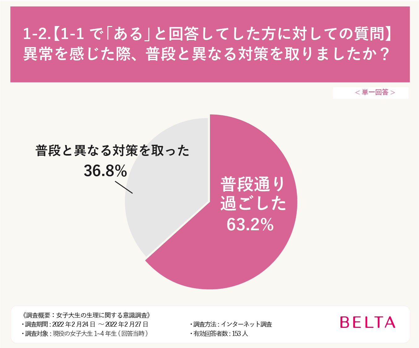 1. 生理の周期・期間の異常を感じても、63.2%の女子大生が「現状維持」を続けている