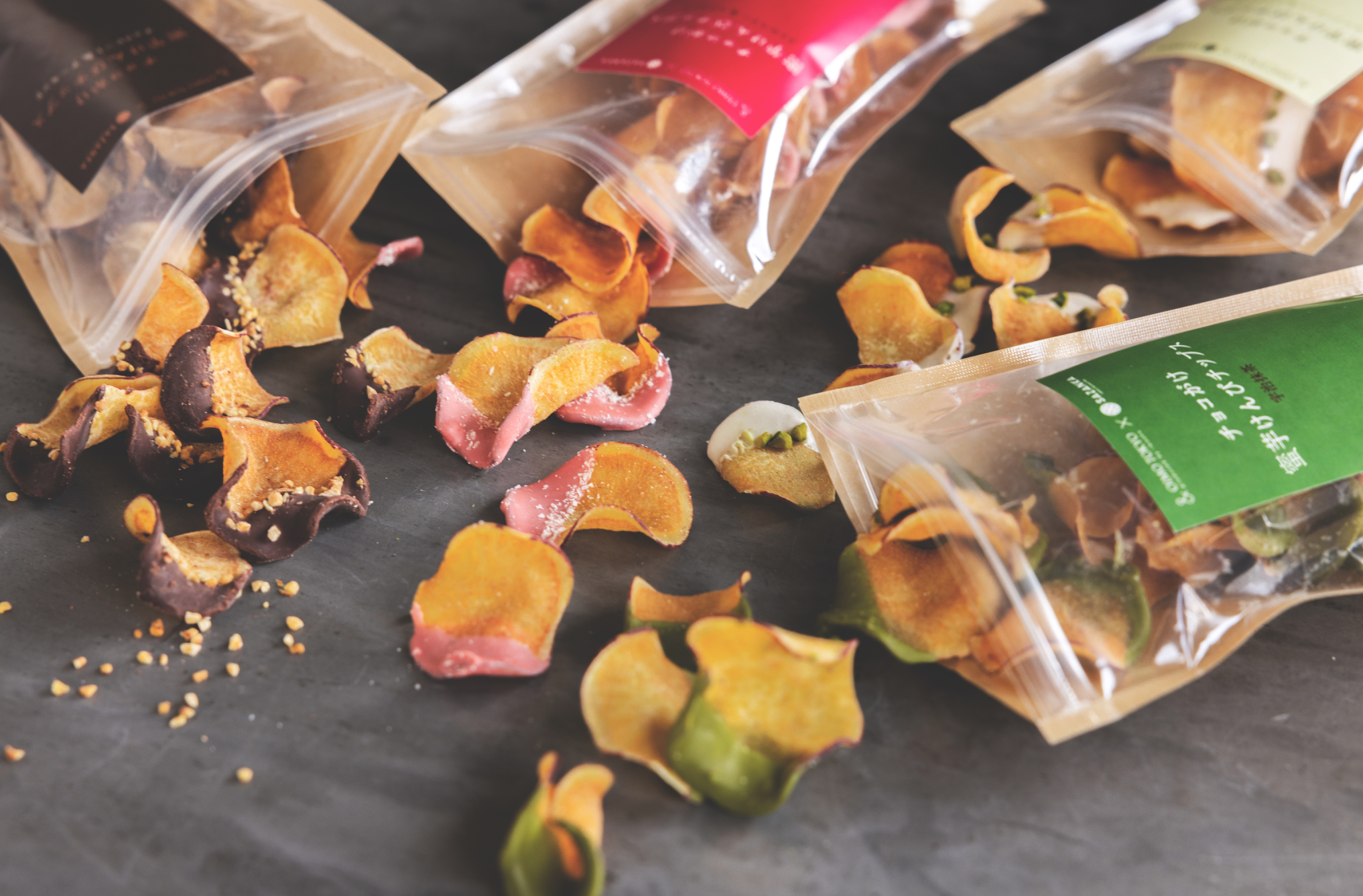 「蜜芋けんぴチップス」のベースとなる《SAZANKA》さんのべにはるかの甘みやうまみをしっかり生かしつつ、何度も試行錯誤を繰り返し、チョコレートの種類やトッピングの種類を検討した結果、素材の掛け算を繰り返す中で、一番おいしいベストなバランスを導き出せたのではないかと思っています、& OIMO TOKYOの世界観を表現しました。