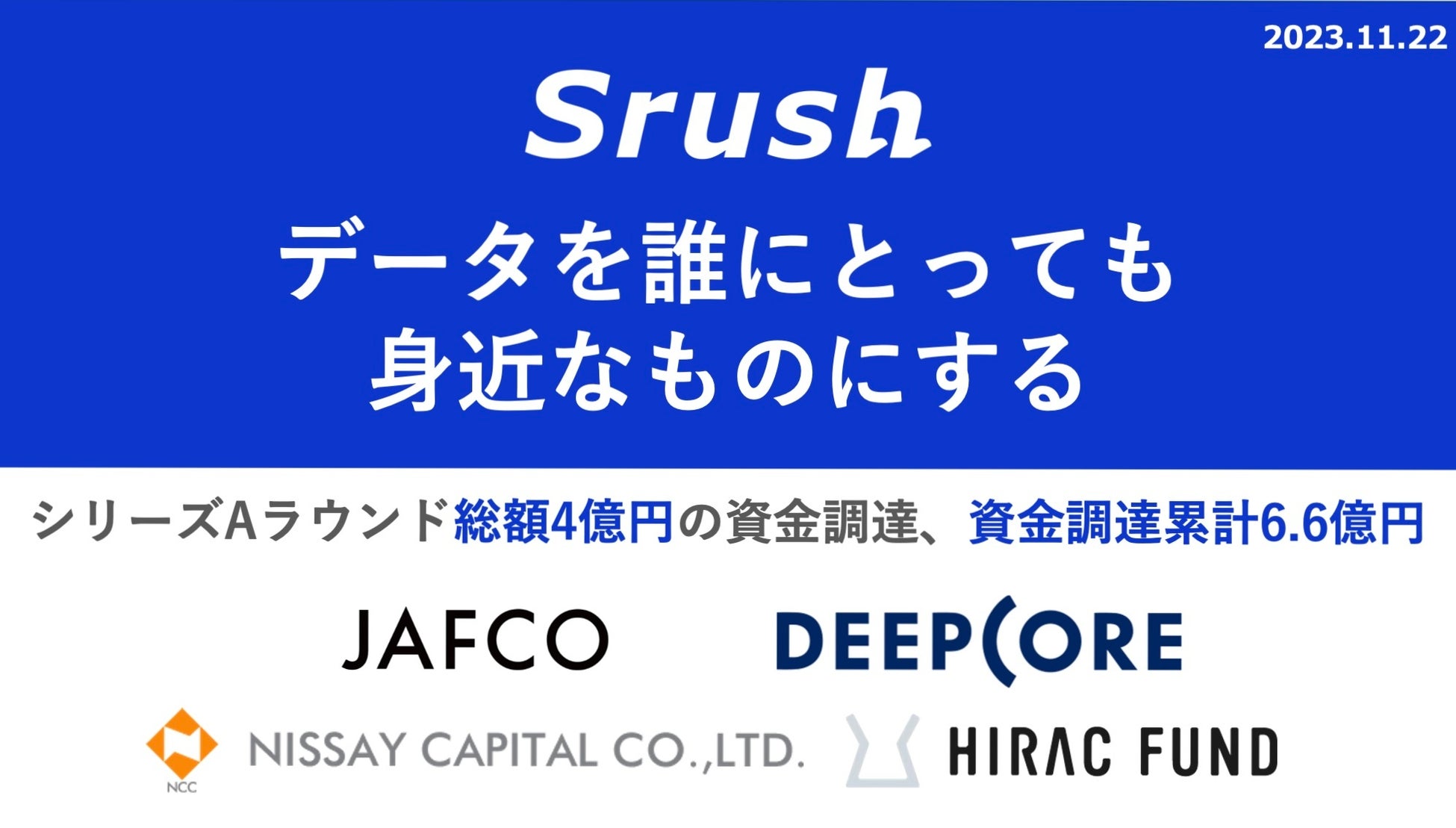 オールインワンデータ分析ツール「データ統一クラウド」を提供する株式会社Srush、シリーズAラウンドで総額4億円の資金調達を実施
