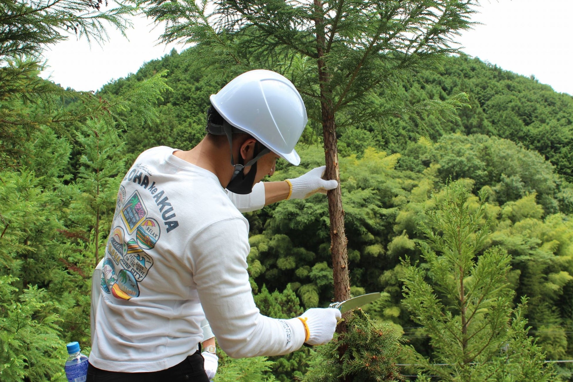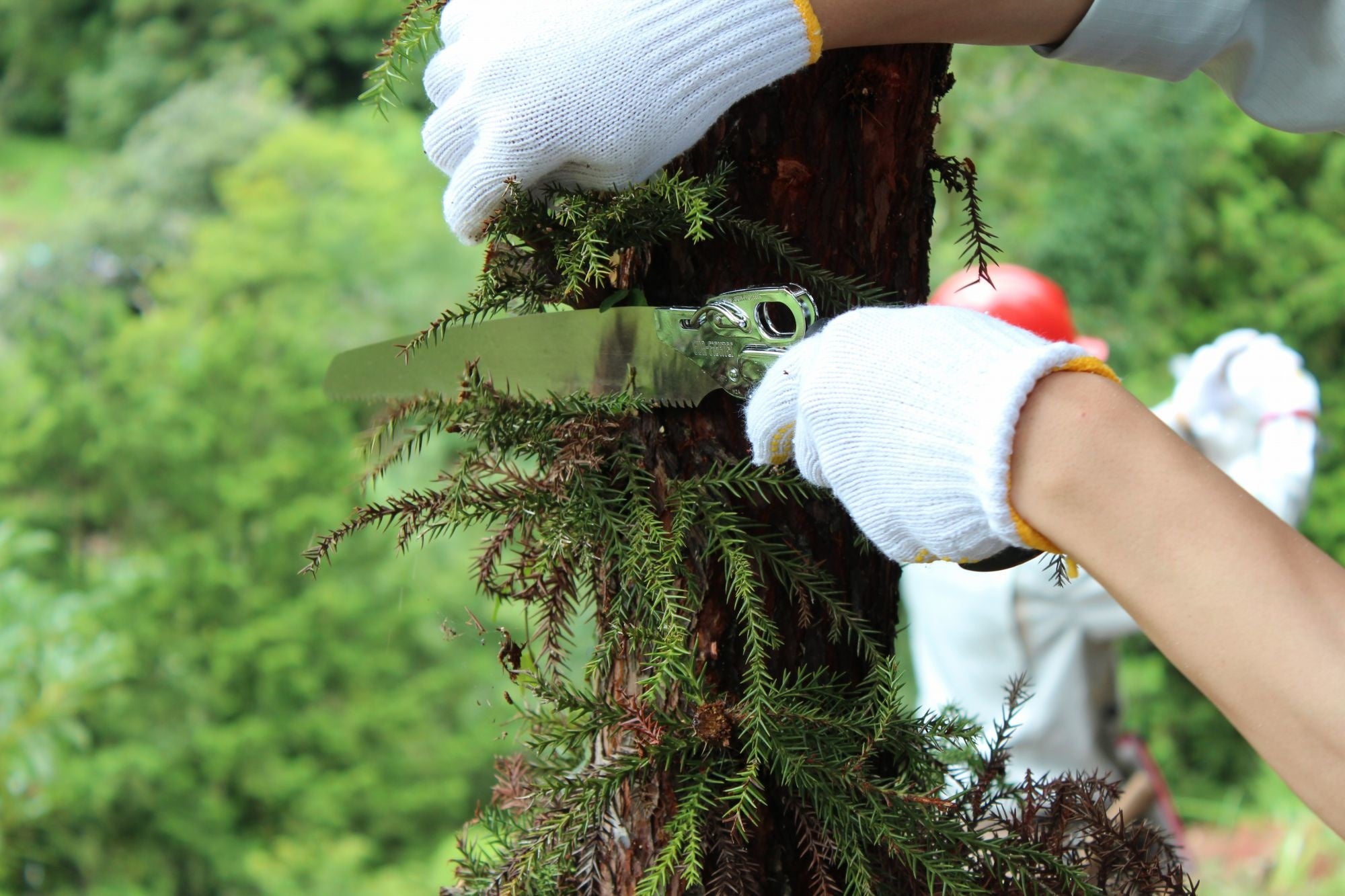 7⽉のイベントは2016年4⽉に協定を締結した2か所⽬の森「企業の森・東栄住宅(⻘梅)」。7年⽬となる今年は、東栄住宅のイベントでは初となる枝打ち作業を実施!総勢44名の社員が枝打ち(根払い)イベントに参加しました。