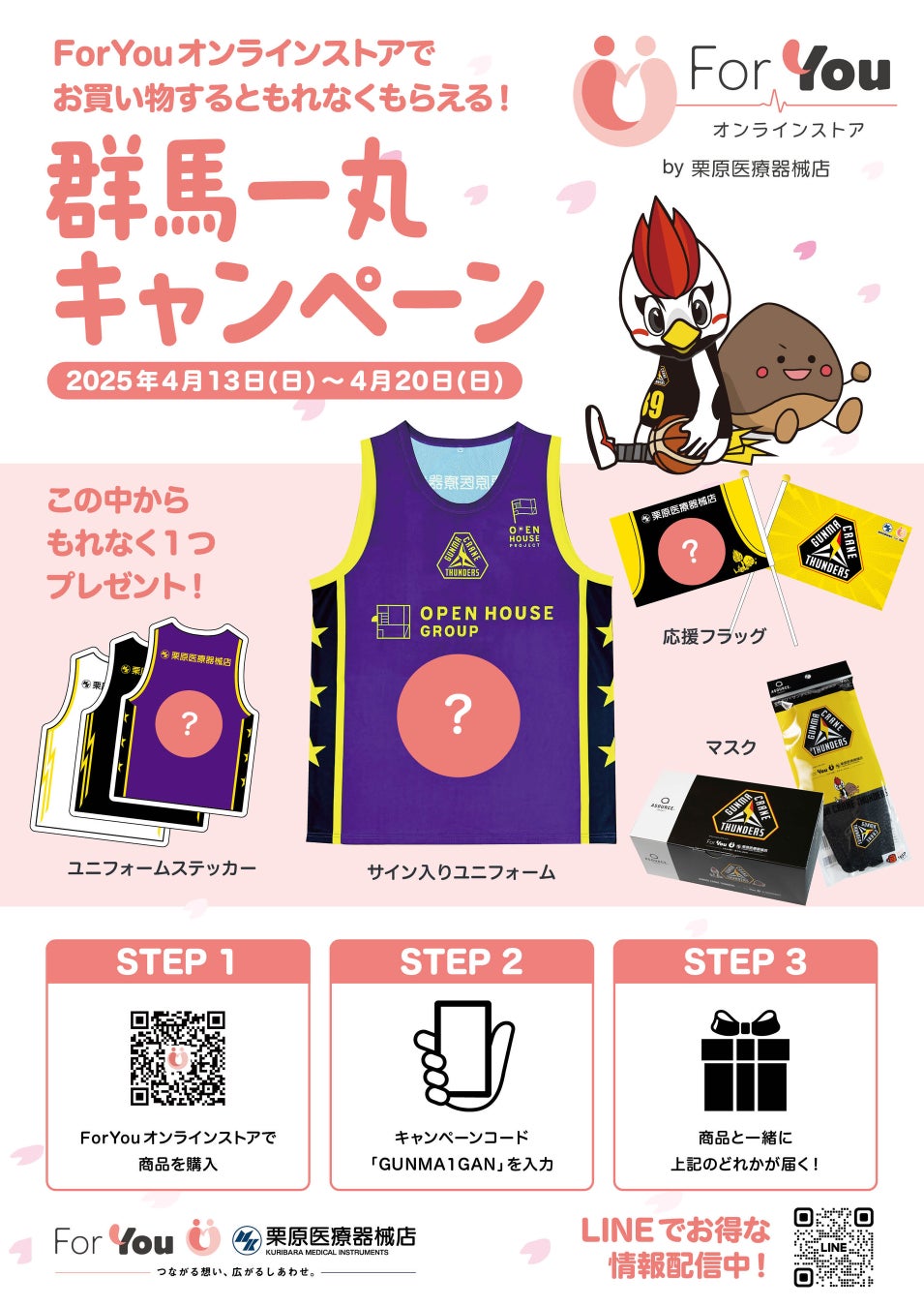 来場が難しい方にも参加いただけるよう、当社ECサイト「ForYouオンラインストア」で「群馬一丸キャンペーン」を実施。商品購入者全員に応援グッズをプレゼントし、地域内外に“応援の輪”を広げました。