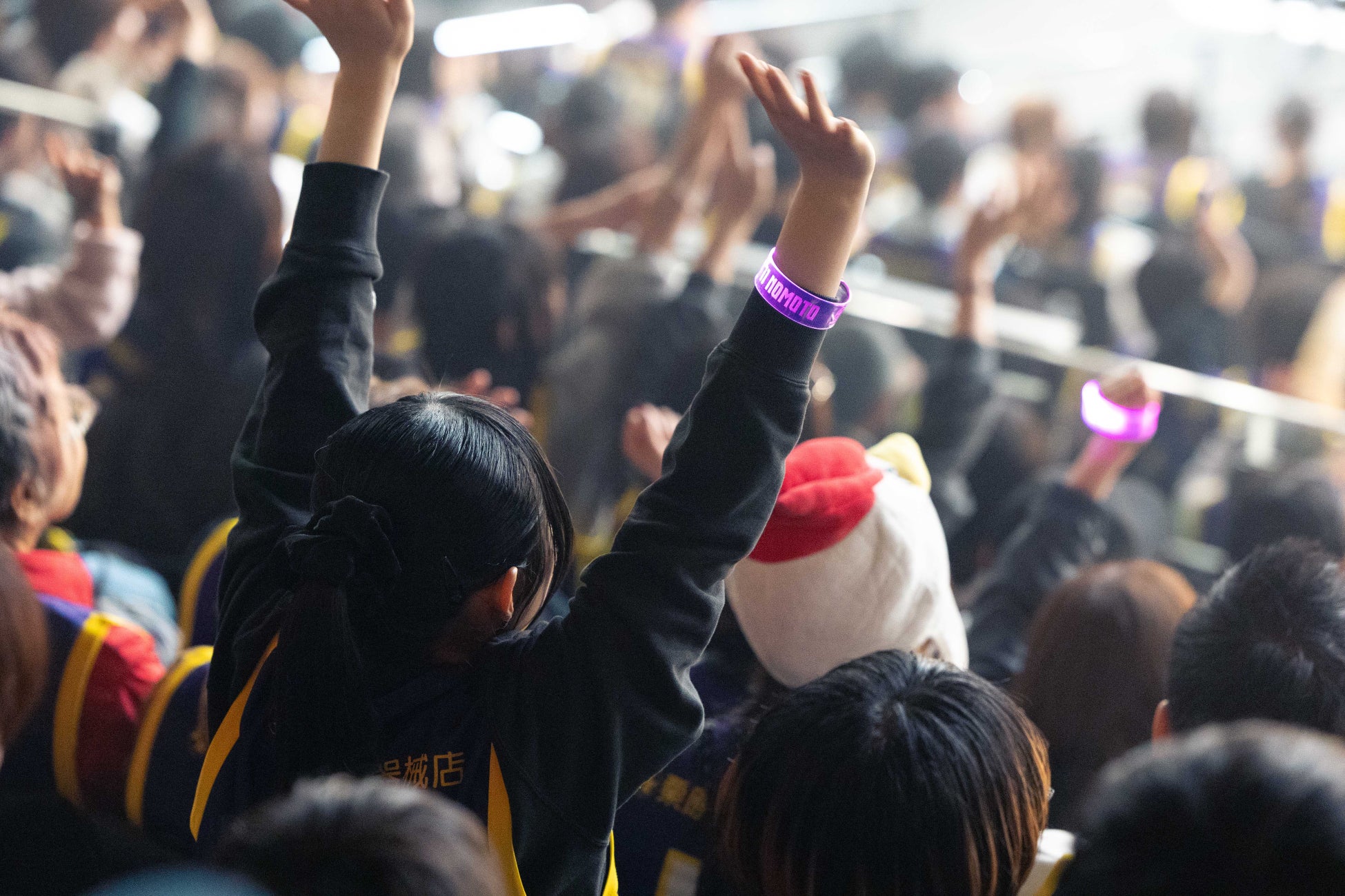 来場者先着5,000名に、紫色に光るLEDブレスレット(13種ランダム)と、チームロゴ入り不織布マスク(7枚入り)を配布。オープンハウスアリーナ太田を幻想的な“紫の光“で包み、一体感ある空間を演出しました。