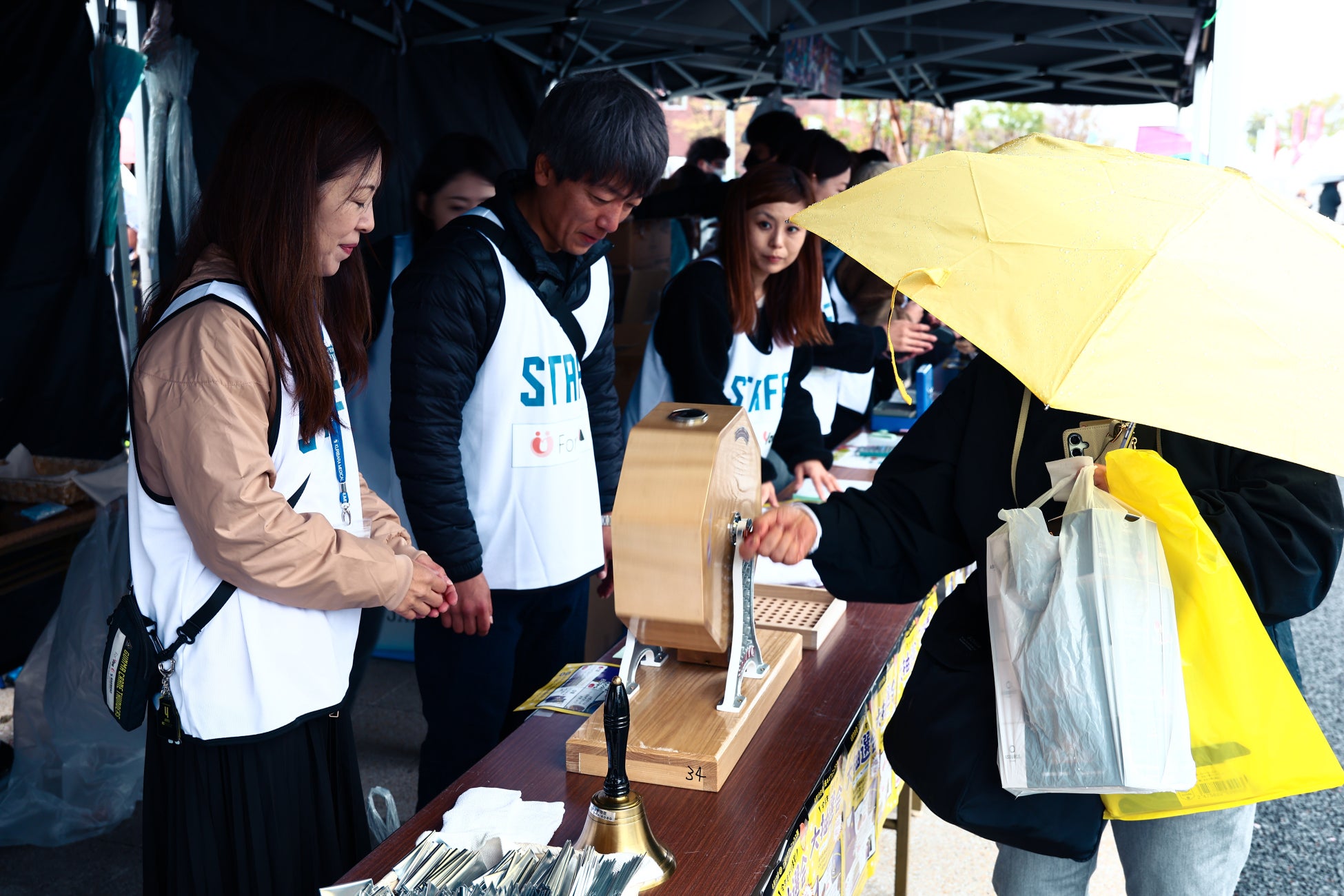 当社ブースにて、「ハズレなしの大抽選会」を実施。当日はあいにくの天候となりましたが、朝から長蛇の列ができるほどの盛況となりました。ファンと直接触れ合う機会となり、企業と地域のつながりを深めることができました。