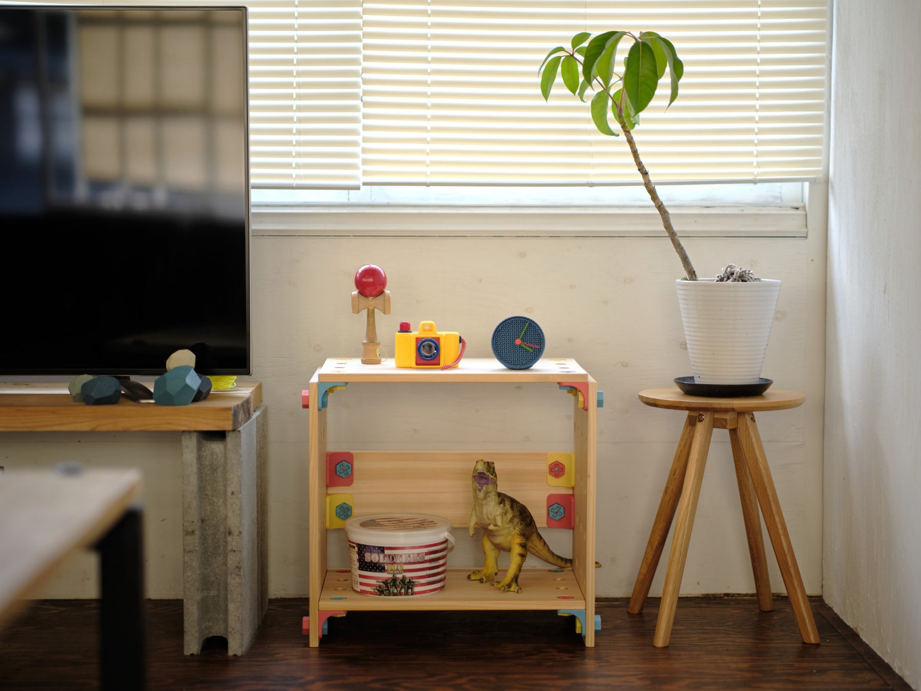 カラフルな樹脂パーツは、存在感のある色合いながらも落ち着きのあるトーンに抑え、子ども部屋以外のリビング空間にも馴染みやすい設計です。