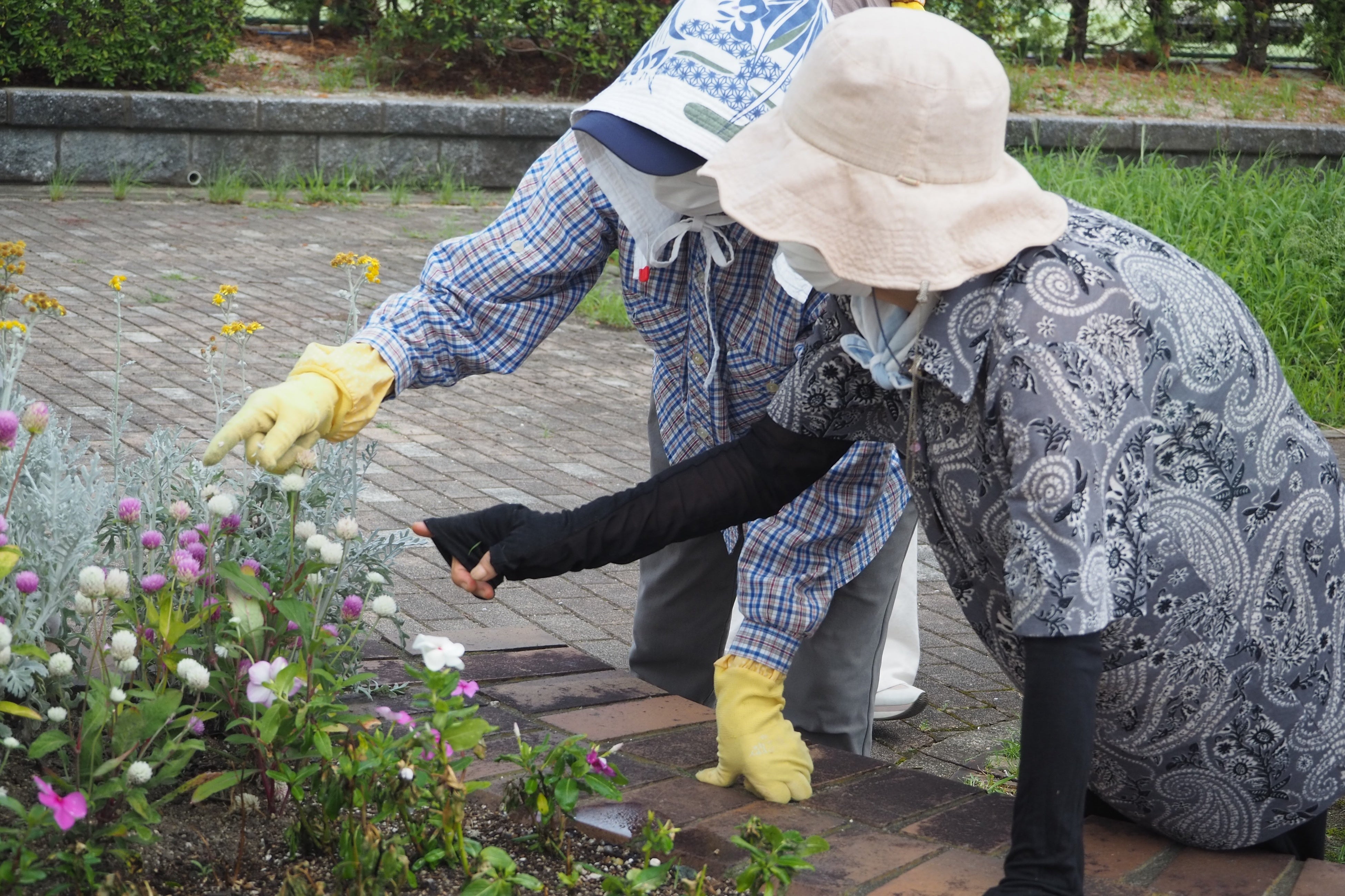 7月22日(金)には、オレンジ人材バンクに登録された方と、地域密着型通所介護施設「がんばり屋さん(https://gannbariyasann.webnode.jp/)」に通われる方々と一緒に雑草の除去作業や水やりをメインに作業を実施しました。作業後、きれいになった花壇をみて満足そうな参加者の皆さんの笑顔が印象的でした。