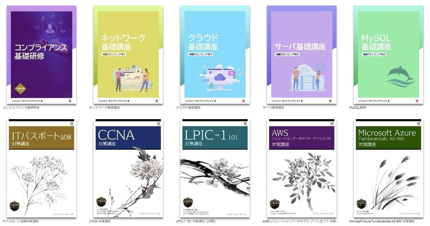 プログラミングやネットワークの入門書から専門資格を取得する為の合格本まで、個々のレベルに合わせた教育をサポートすることが可能です。コンプライアンス基礎研修や、情報セキュリティー基礎研修など、人事研修の範囲も一部カバーをしております。