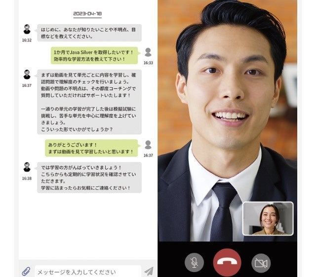 目標設定や学習中の質問、進捗確認などもコーチング機能で講師に直接確認しながら学習を進めることができます。