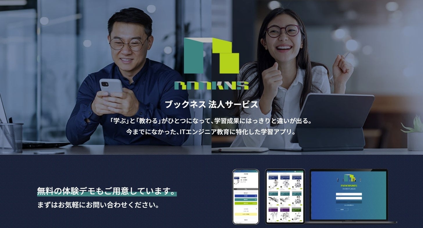 BOOKNSとは、エンジニア育成に特化した定額制のオンライン学習サービスです。