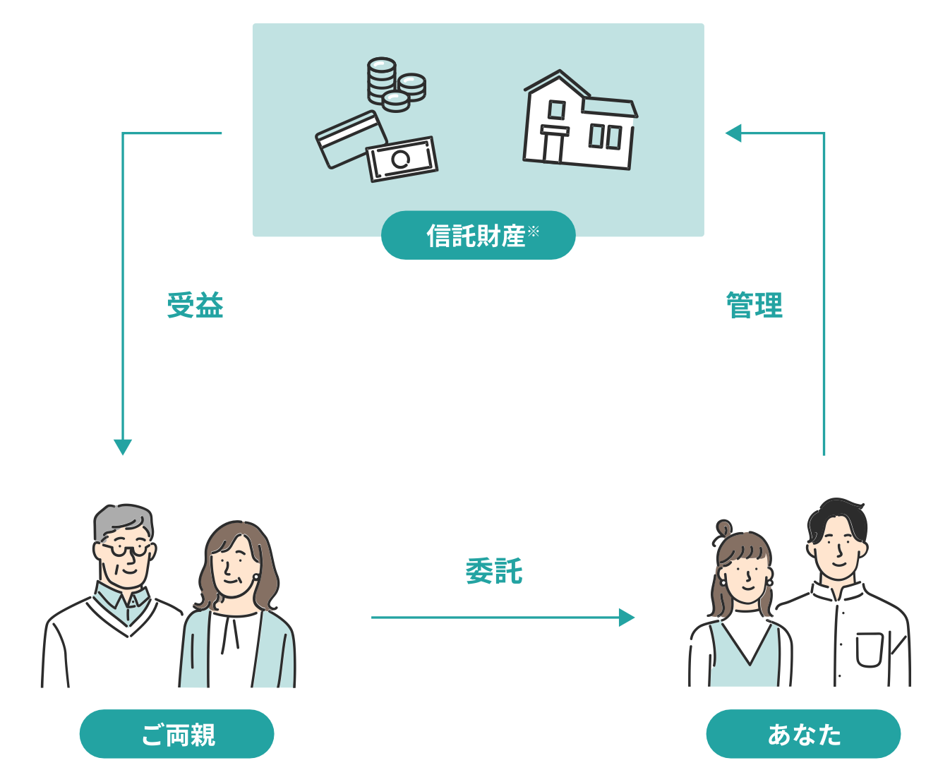 認知症になり意思能力が無いとされると、あらゆる契約行為が締結・解除できなくなります。定期預金の解約や自宅等不動産の売却・管理などができなくなる可能性があります。こうした資産凍結への不安を抱く方が、家族に資産を託し、その管理や処分を家族に行ってもらうのが家族信託です。