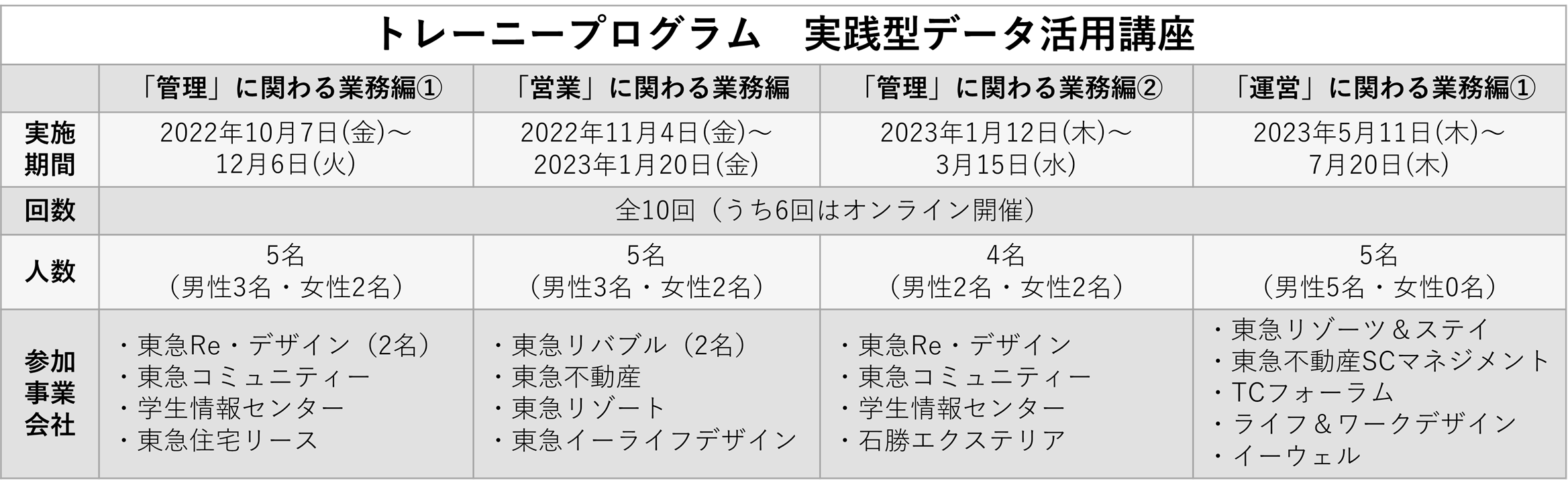 これらの背景から、東急不動産ホールディングスグループではデジタルをビジネスに落とし込み、プロジェクトを主体的に推進する人財を「ブリッジパーソン」と定義し、育成施策の1つとして本プログラムが始動しました。複合的な能力が求められるブリッジパーソンの育成においては実践により初めて能力が獲得できるため、東急不動産ホールディングスグループ内で実践経験を得る機会を創出することで、今後更なるブリッジパーソンの育成及び活躍に向けて取り組みを進めてまいります。